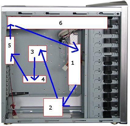 AGB -> Laing (IN oben -> OUT Seite) -> WC Silentstar -> AC DFM -> SB -> aquagratix -> Spawa links -> Spawa oben -> EK LT -> Koolance VL3N -> Mo-Ra3 9x140mm -> Koolance VL3N -> AE5 Kühler -> AGB. Schlauch ist 16/10mm mit 10mm PS Tüllen, 1x 90° Quaderwinkel.