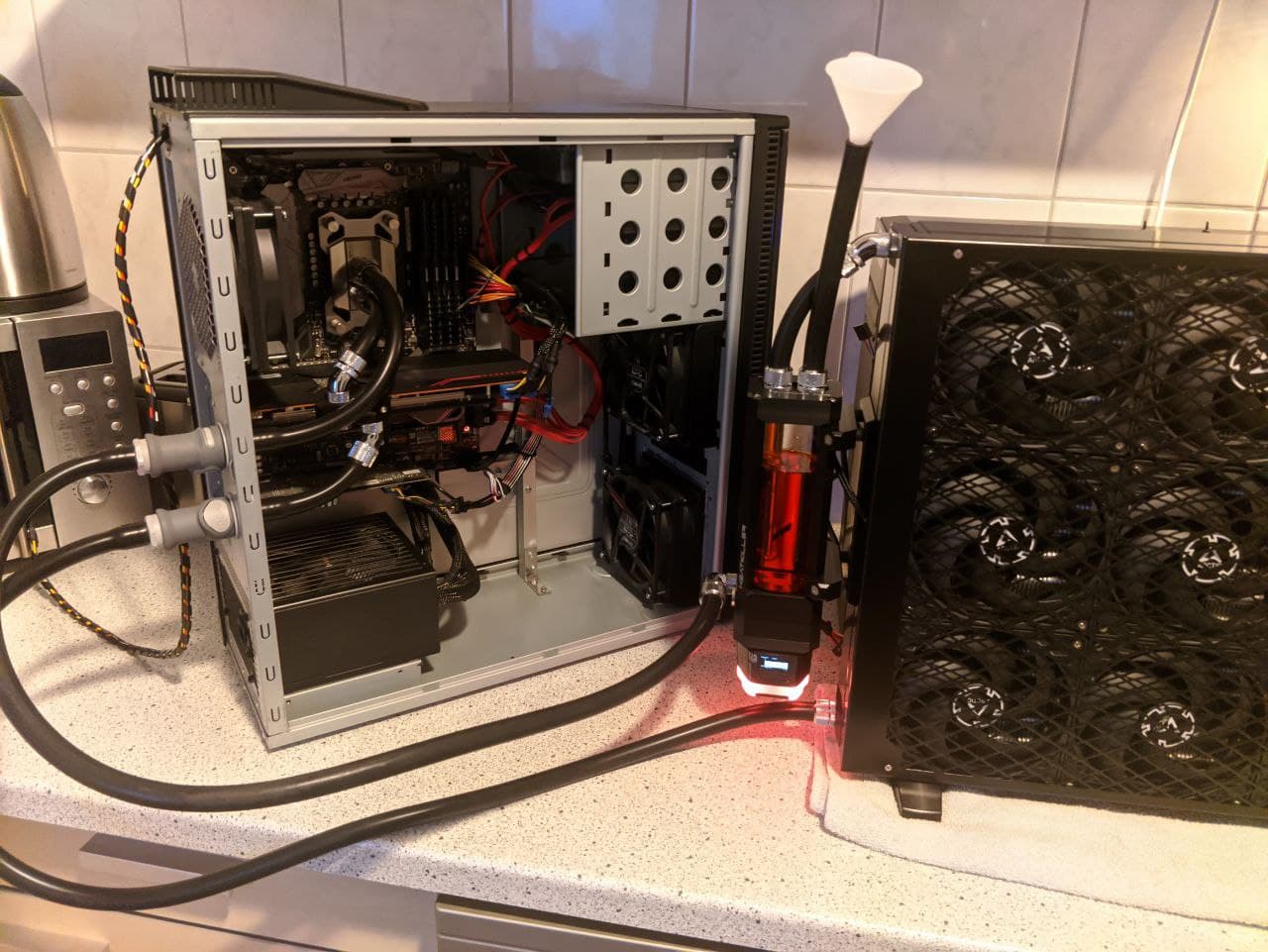 Paar Kandidaten gibts immer, die meinten, anhand irgendwelcher Youtube-Videos oder der idiotischen Konfiguratoren bestimmter optikfokussierter Hersteller mit für das gebotene überteuertem Portfolio ihre Wakü zusammenzustellen, ohne vorher im Forum nachzufragen und sich dann beschweren, warum ihre Hardware kaum kühler, wenn nicht noch wärmer als mit Luft wird, wo doch der Konfigurator bestimmter optikfokussierter Hersteller mit für das gebotene überteuertem Portfolio gesagt hat, dass der eine 360er oder 420er reicht. War halt nicht so, oder wäre nur mit den herstellereigenen Lüftern, die locker die 2000 Umdrehungen knacken, möglich gewesen. Und dann wäre es auch nur bei "reicht" geblieben. Natürlich kann man, wenn man keine wirkliche Last auf die Hardware gibt, mühelos mit zu wenig Fläche auskommen, aber unter Last ist man dann eben am A*sch.