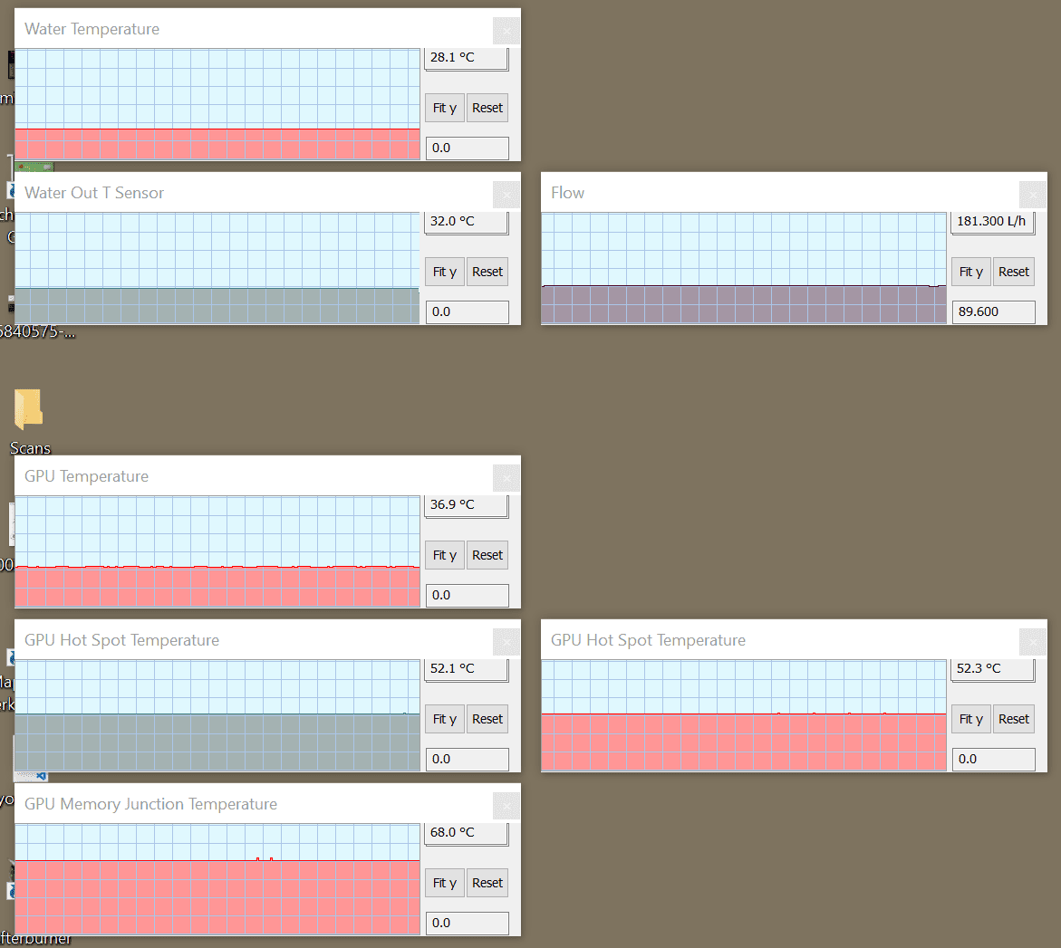 Ich habe mit 2 internen und 2 externen 360er Radis 12° Delta Luft Wasser bei ~40% Lüfterdrehzahl bzw. in anderen Zahlen ist die GPU bei etwa 48° und die CPU bei 65°