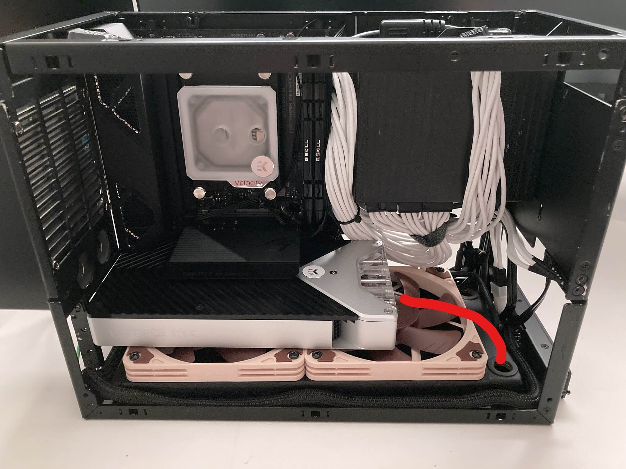 Und ja, man braucht dünne Finger und viel Geduld wenn es um den Radi unten geht. Fluchen wird man genug. Protip: Netzteil rausschieben solange am Radi unten gewerkelt wird.
