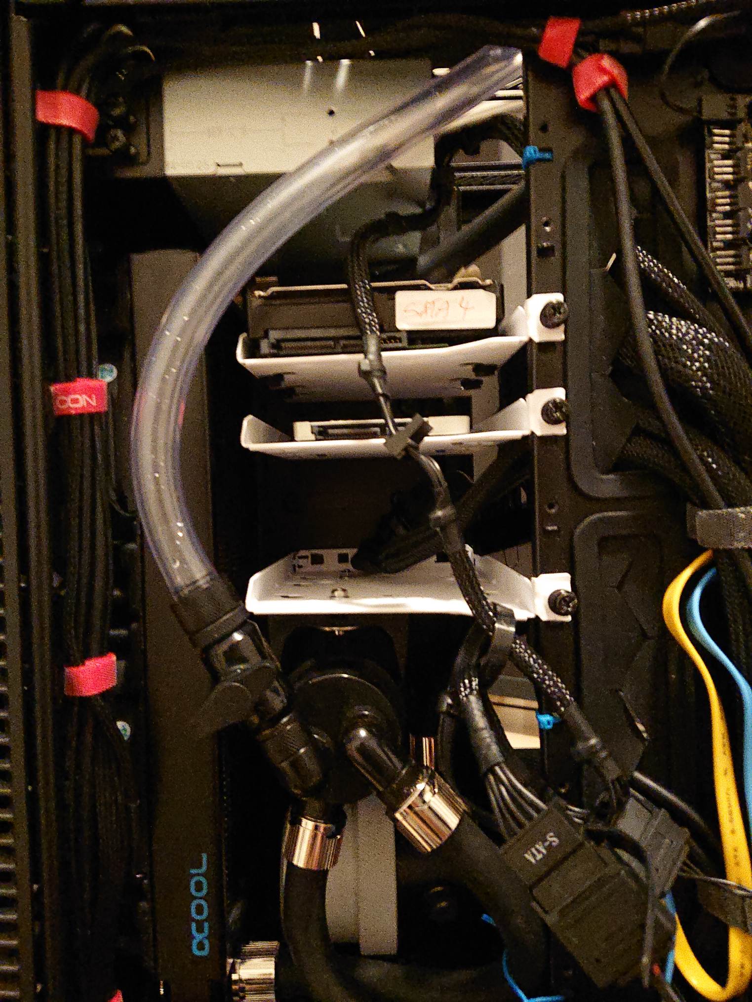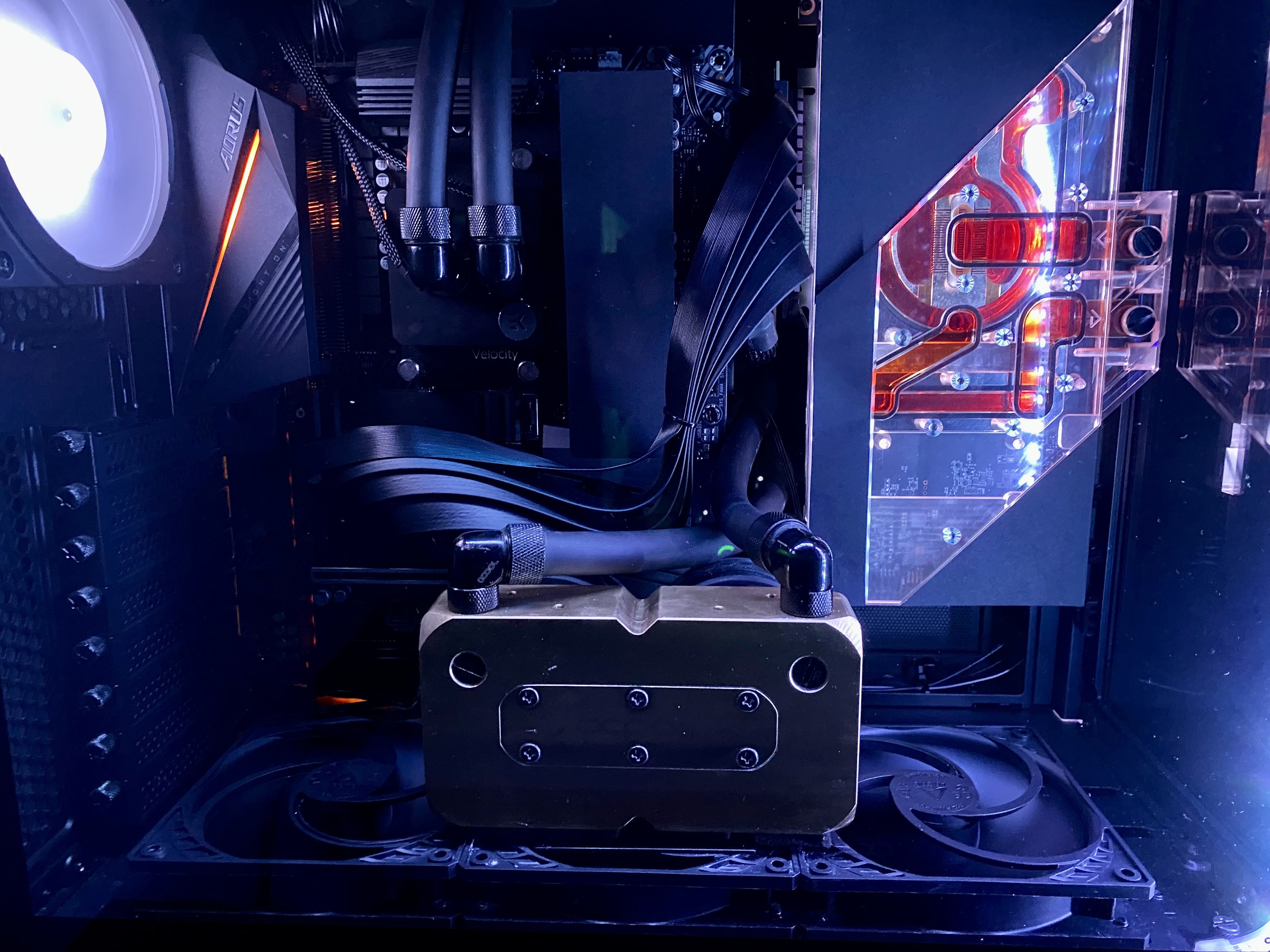 Meine Empfehlung als Gehäuse für eine Custom-Wakü mit internen Radiatoren ist das Raijintek Paean Premium. Man kann 4x 360er Radiatoren gleichzeitig mit 60mm Stärke verbauen (plus einseitig Lüfter). Alternativ bzw. vom Hersteller vorgesehen 3 Radiatoren und eine Distroplate oder oder... In der unteren Abteilung sind sogar noch breitere Radiatoren möglich oder genug Platz für eine Dual-Pumpe dazwischen. Ich musste zwar einiges mit dem Dremel anpassen für meine Hardware Labs SR-2 Multiport Radis, aber es lohnt sich.