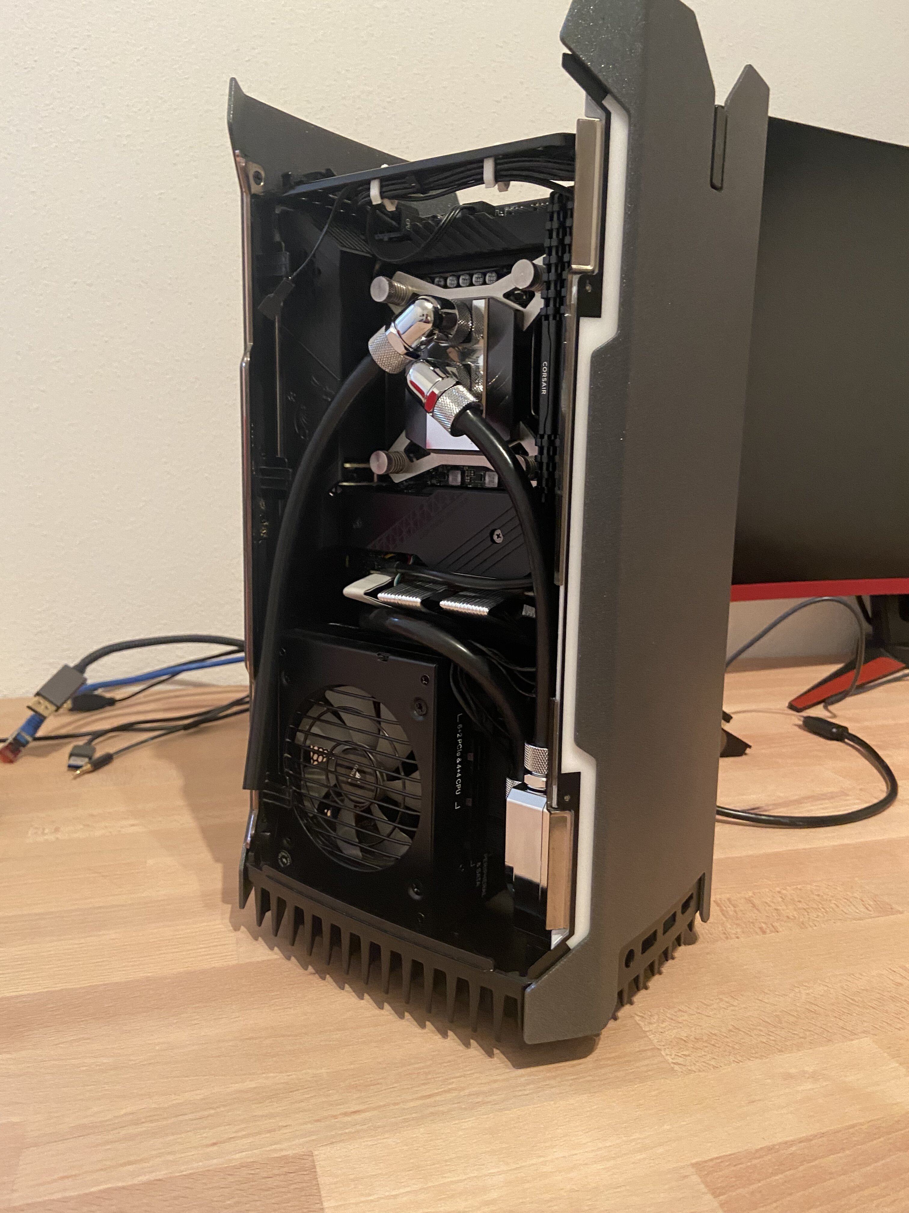 Custom Corsair One ist fertig und läuft, nur das SF600 is mir zu laut gewesen, wurde gegen ein SF750 getauscht.. den EVGA Sticker hab ich über das unter IO-shield geklebt da dieses weichen musste, da sonst kein Platz war für die PumpeHallo zusammen,
