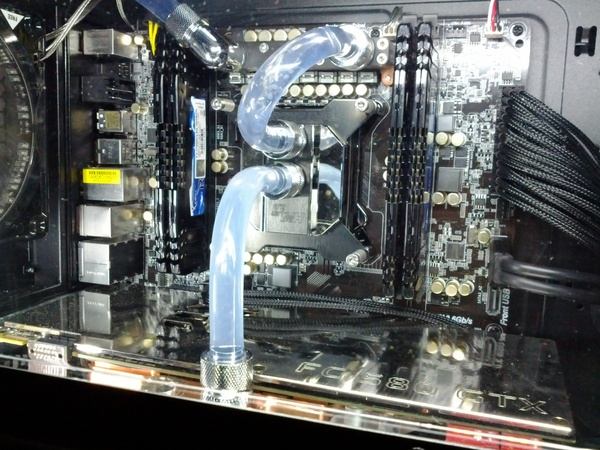 - dann kurzzeitiger Wasseraustritt (was ein glueck habe ich gelernt inzwischen wie man das macht - danke dir, ATX - Bruecke - sonst haette das den Tod der GraKas bewirkt)