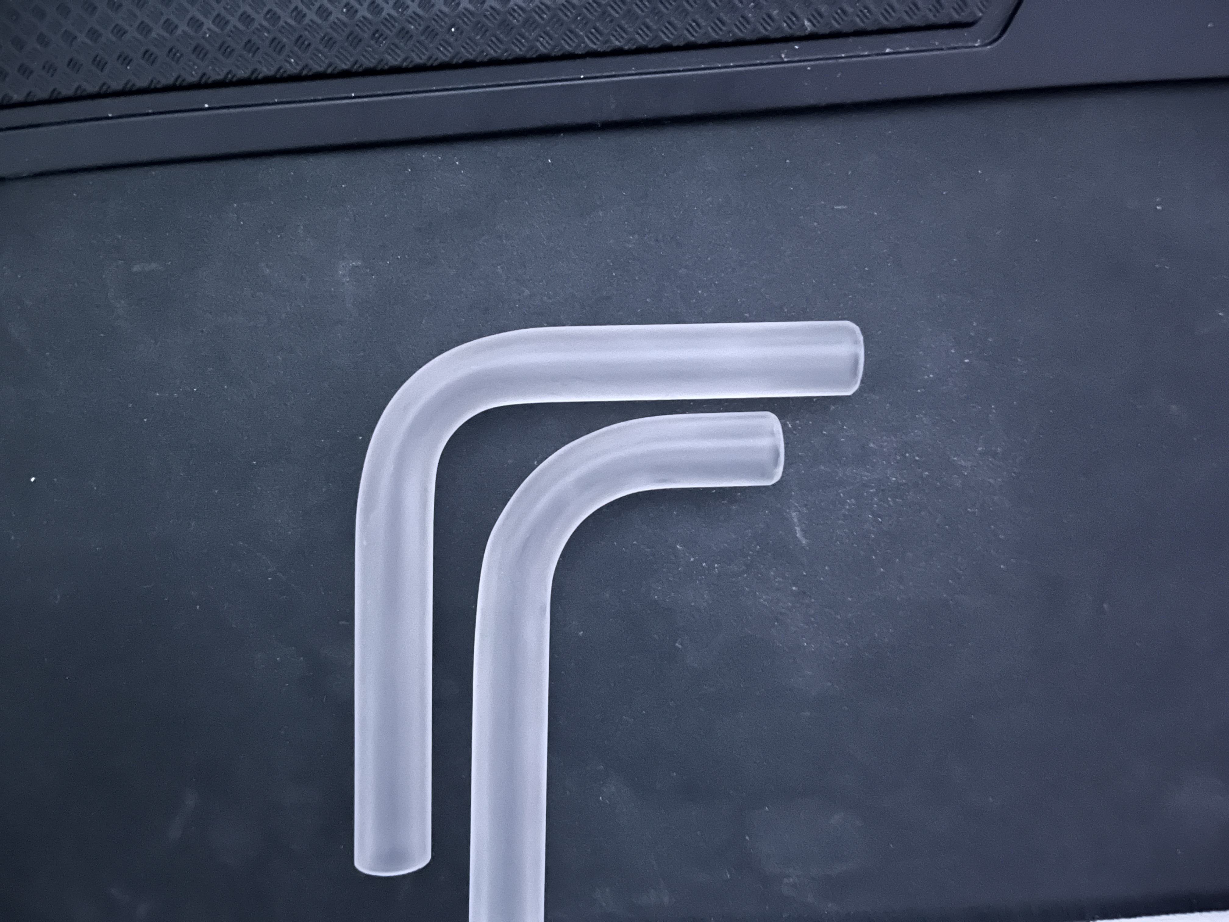 Nochmal ich: habe jetzt ein paar Tubes gebogen aber hab immer das Problem, dass die Tubes in der Begiegung so platt gedrückt aussehen und nach der Biegung breiter werden (Ähnlich wie hier) - egal ob ich es sehr lange oder bei "optimaler" Länge erwärme. Habe jetzt mal die Tubes und den Silikonschlauch gemessen und eine Differenz im Durchmesser von 1mm festgestellt.