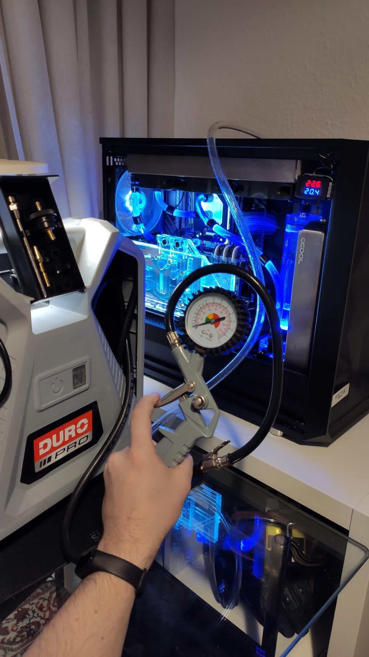 Aquacomputer schafft erst ein neues Problem und bietet dann mit dem Leakshield direkt die Lösung als Addon an. Denn man dem Unterdruck vom Leakshield kann man den Filter von unten mit Wasser durchspülen.