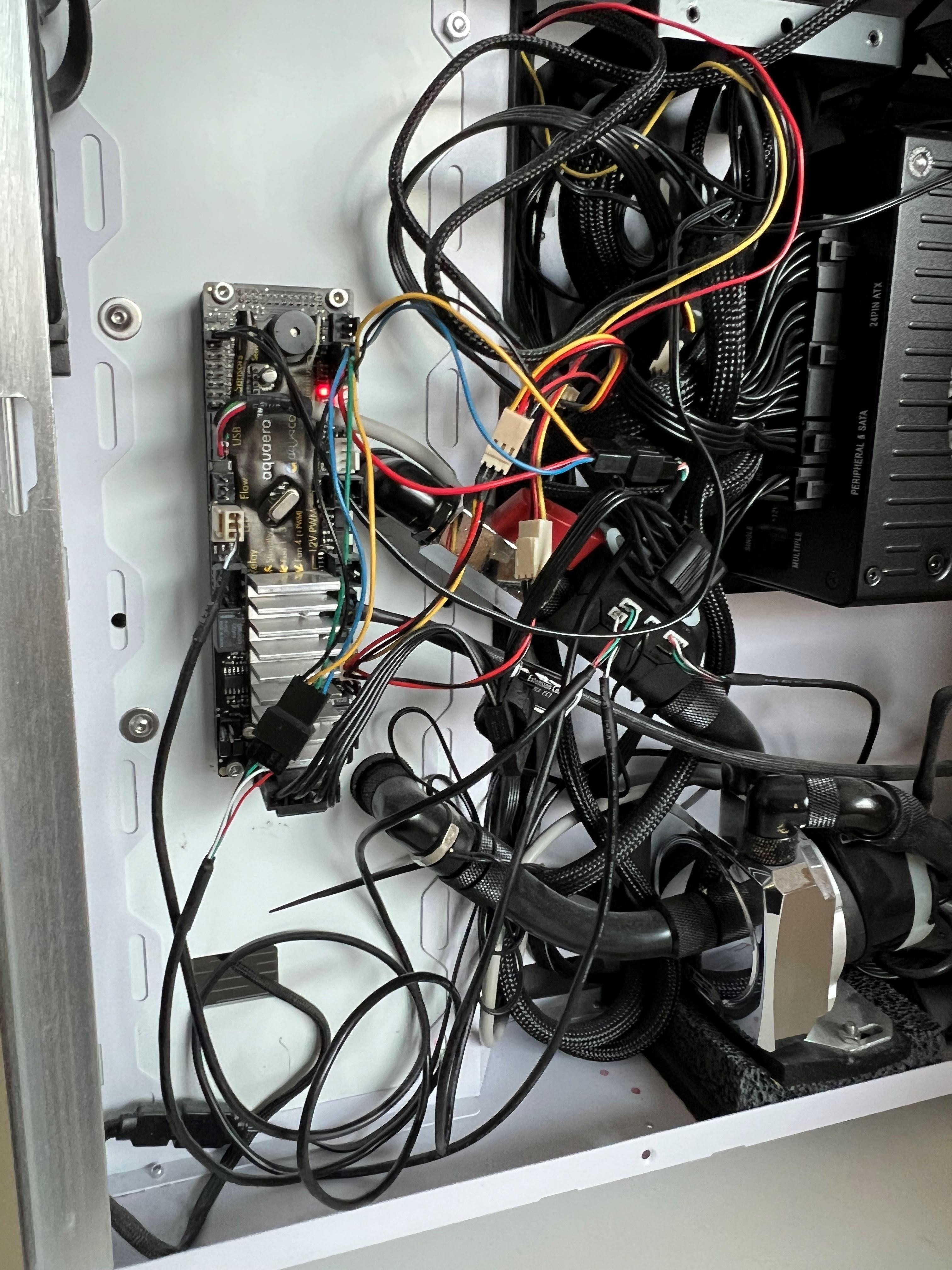 Bin froh über die maximale Mobilität und ich kann binnen 15-60 Sekunden jedes Bauteil wie GPU, CPU, AGB/Pumpe, Radiator intern entfernen.....das abschrauben dauert länger als das trennen.