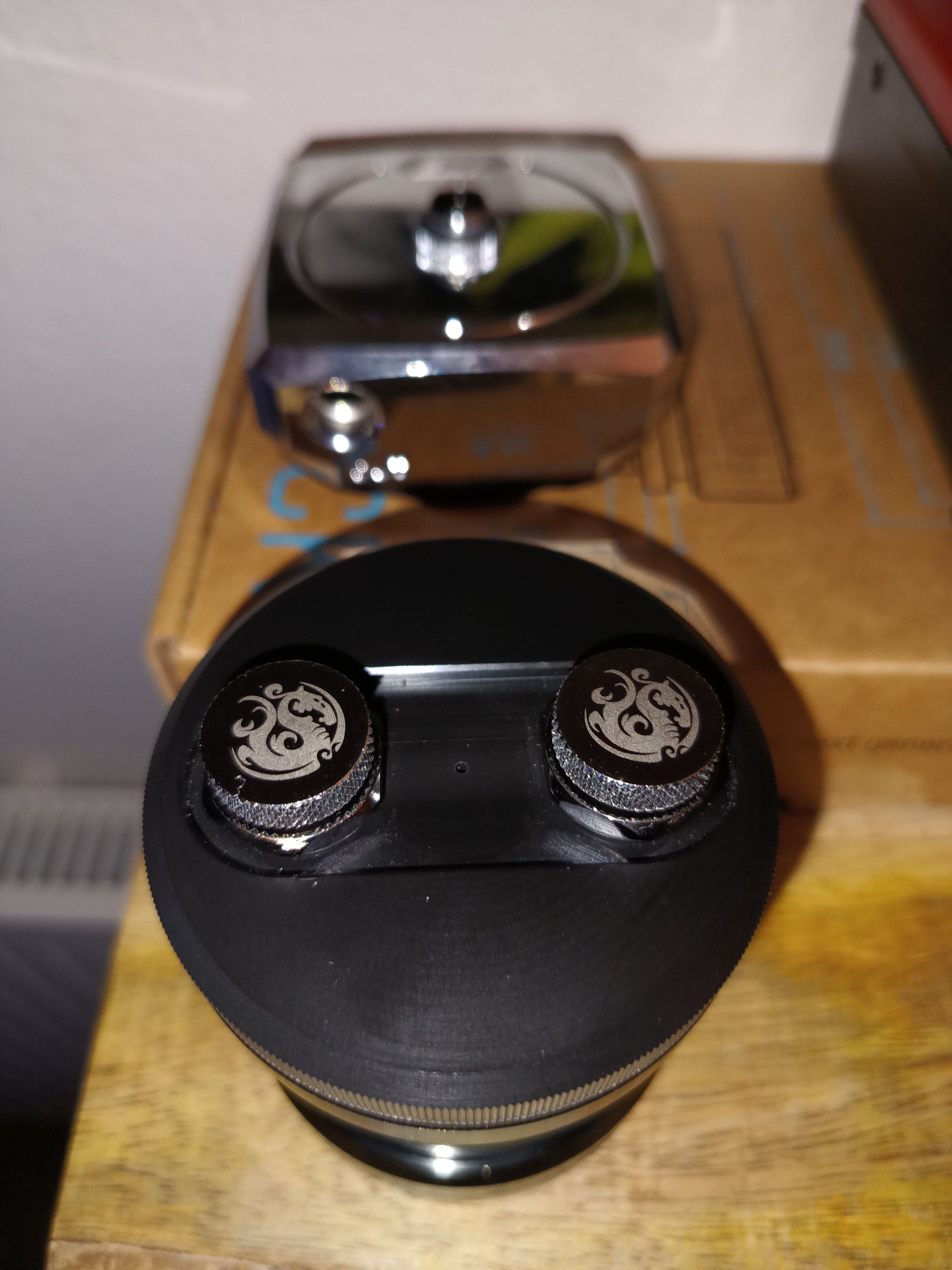 Die Pumpen wären kein Problem, das transparente Top jedoch.... hab nur 6 Messingtops.Hast doch sicherlich zwei Pumpen herumliegen, gerne mal ausprobieren, denke jedoch, dass eher die Pumpengehäuse und deren Verlauf die Bremse sind.