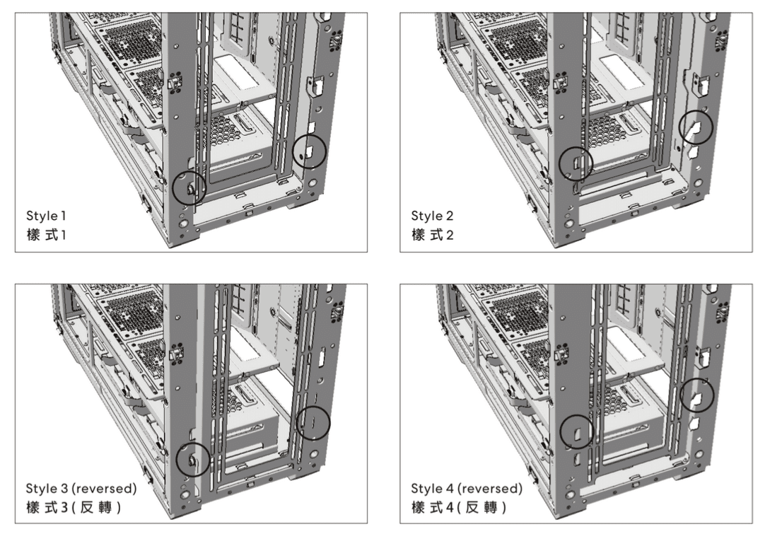 Die Beschreibung ist nur leider nicht richtig. Auch in der zweitvordersten Stellung "Style 4" lässt der Frontfilter sich nicht installieren. Bleiben Stellung 1 und 2, was die mögliche Grafikkartenlänge mit Glück auf das Format einer MSI RTX 4080 Super Suprim X (gut 33 cm) reduziert. Weil der Bastler Fehler zunächst bei sich selbst sucht, habe ich an Bracket, Fans und Filter stundenlang rumgedrückt, -verstellt und -geschraubt, bis ich sicher war, dass die Aussage Lian Lis falsch ist. Dann wurde der Technical Support kontaktiert, das Problem beschrieben, Fotos gemacht, Rechnung hochgeladen, das ganze Programm.