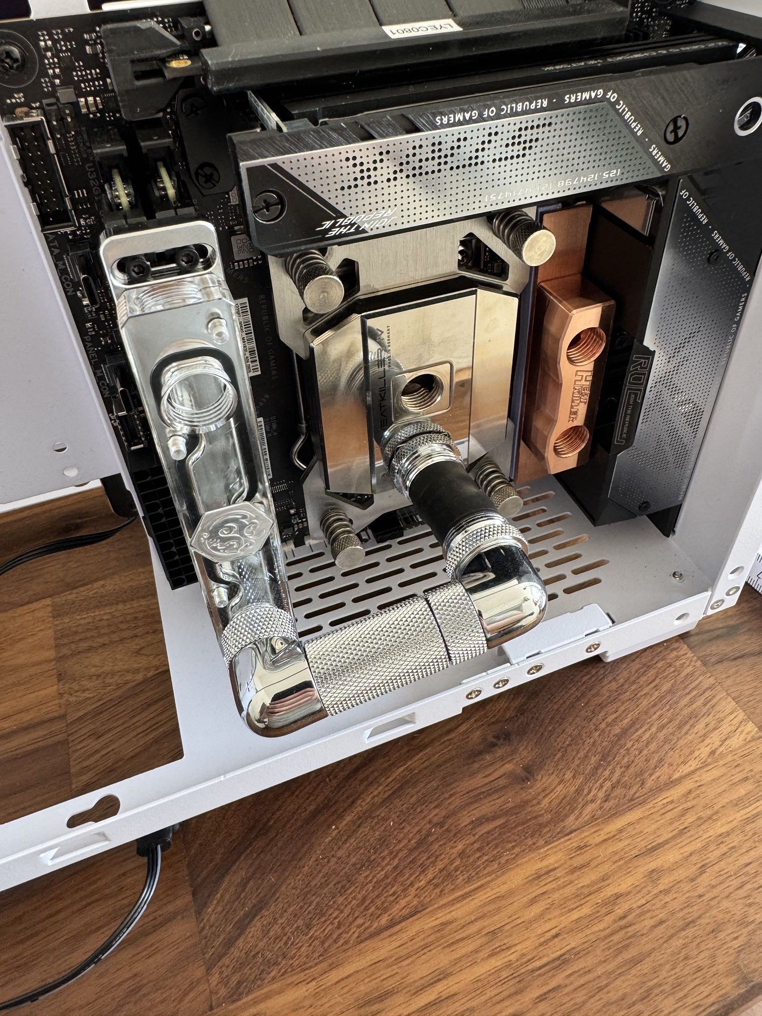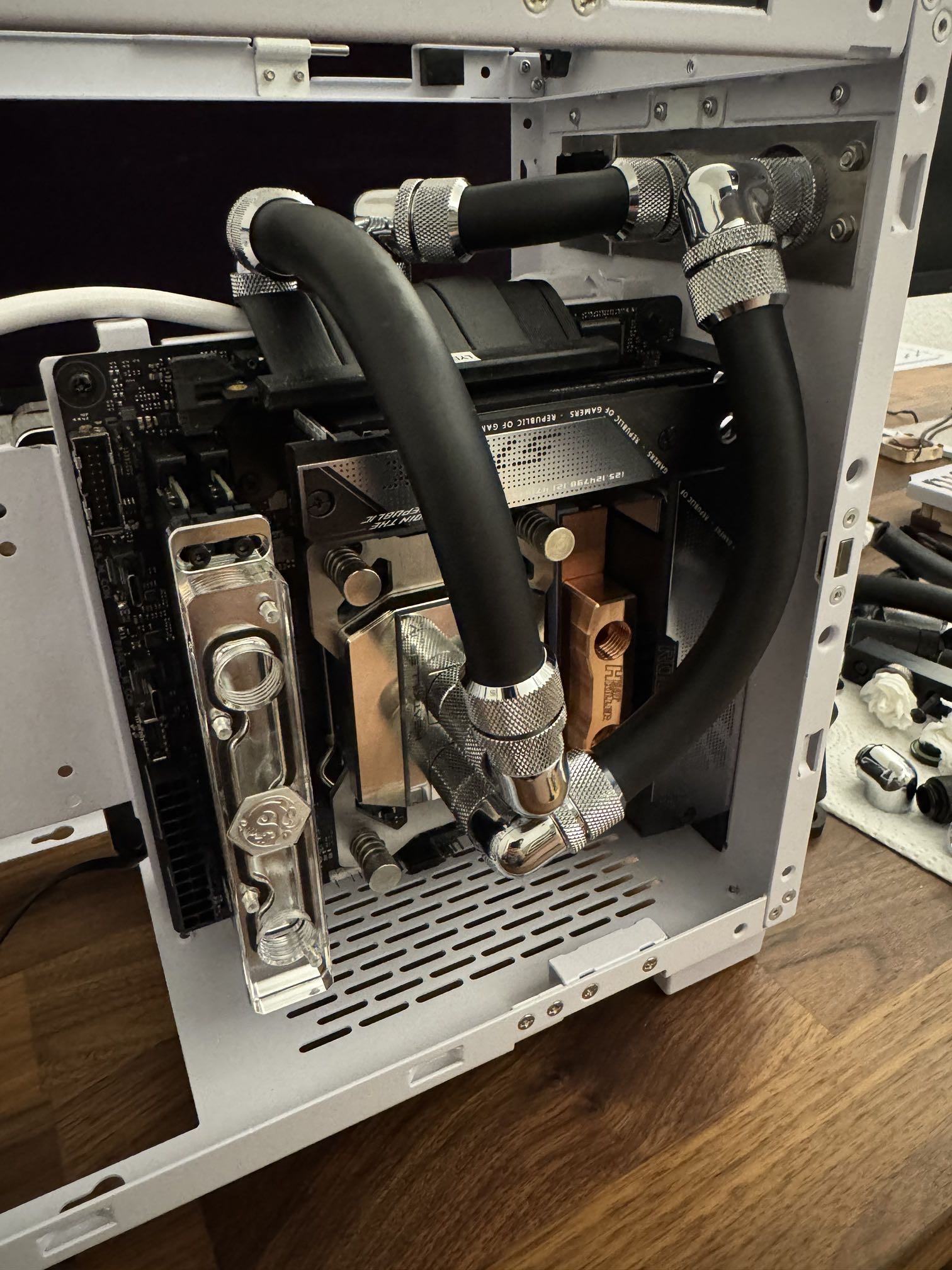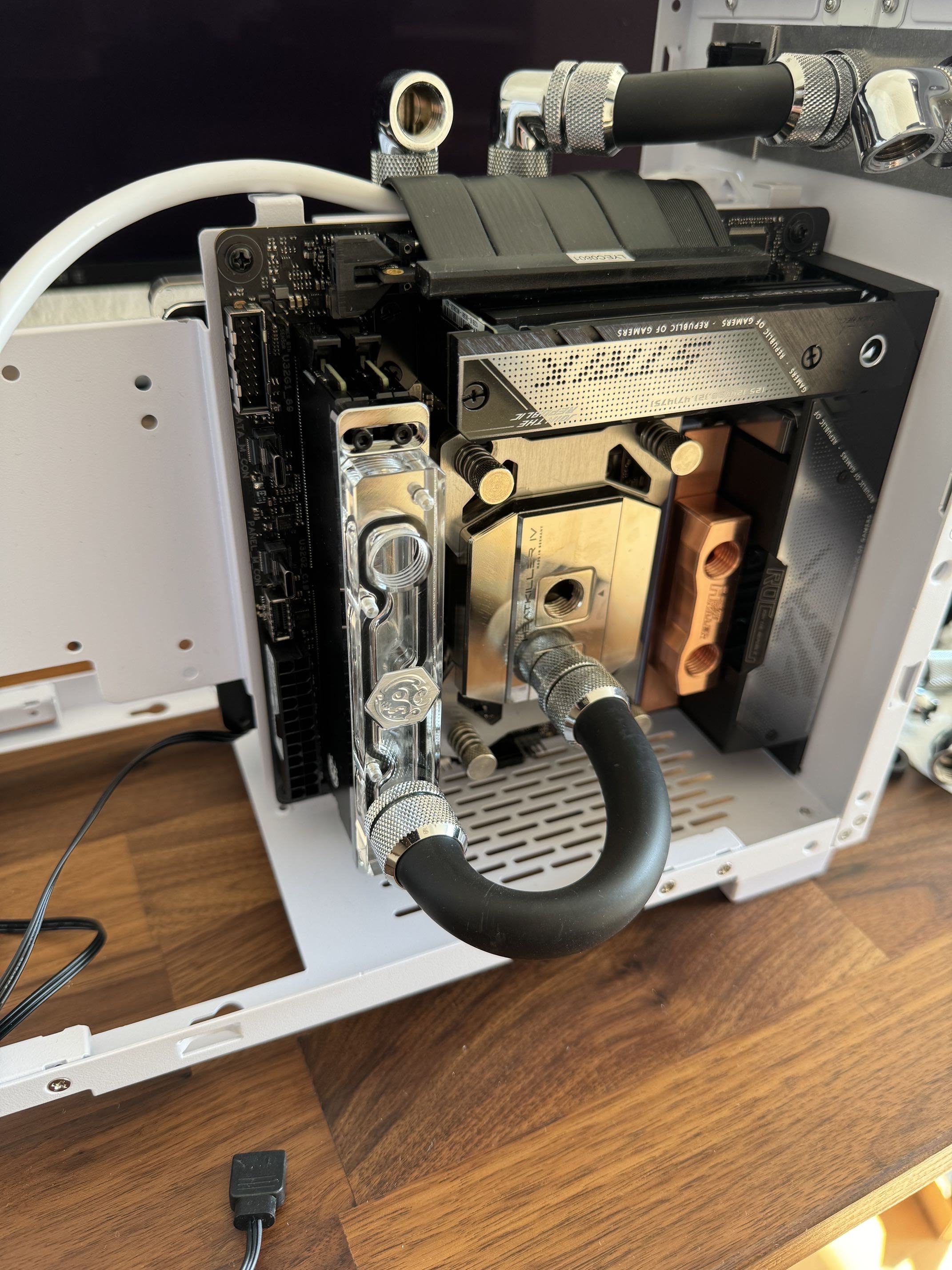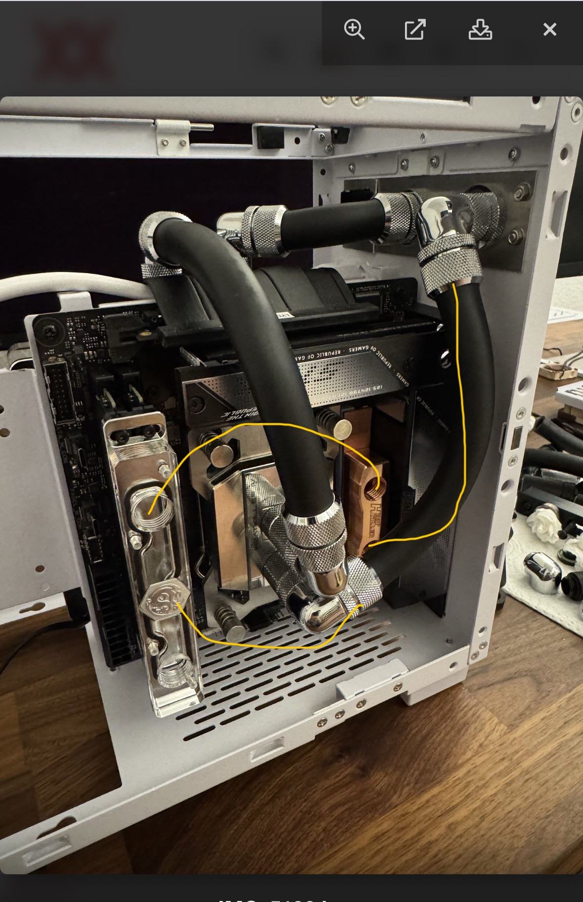 VRM und CPU könntest du eine Verbindung direkt herstellen.Entweder mit Winkel Fittingen und Verlängerung oder mit Softtues und Winkelstücken.Damit bekommt man einen gewissen versatz hin.