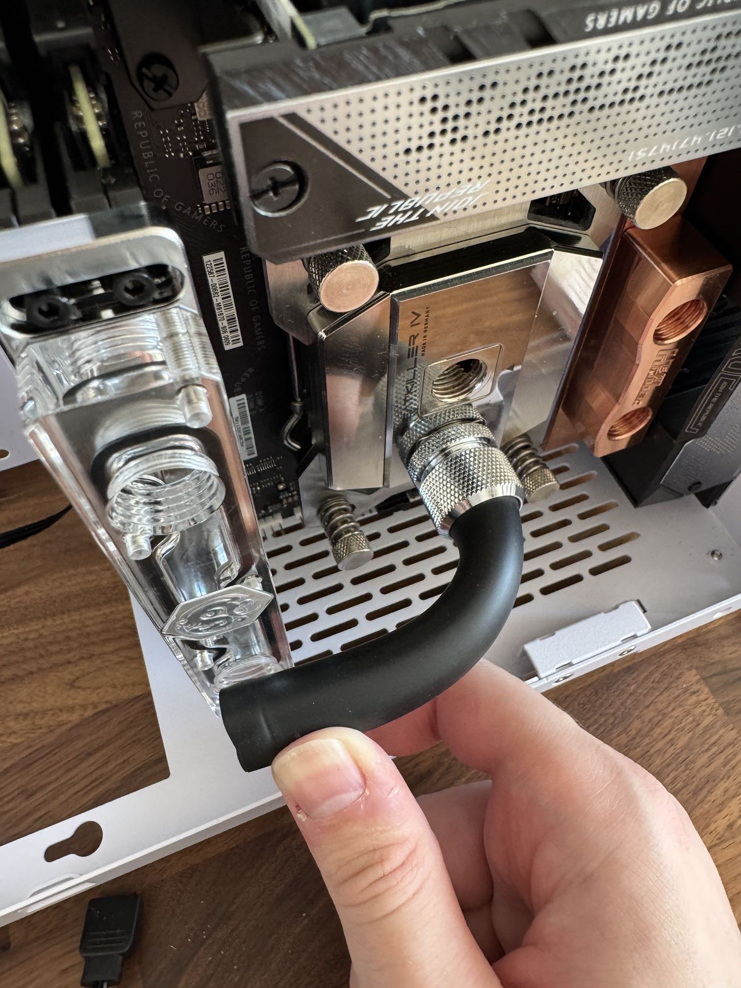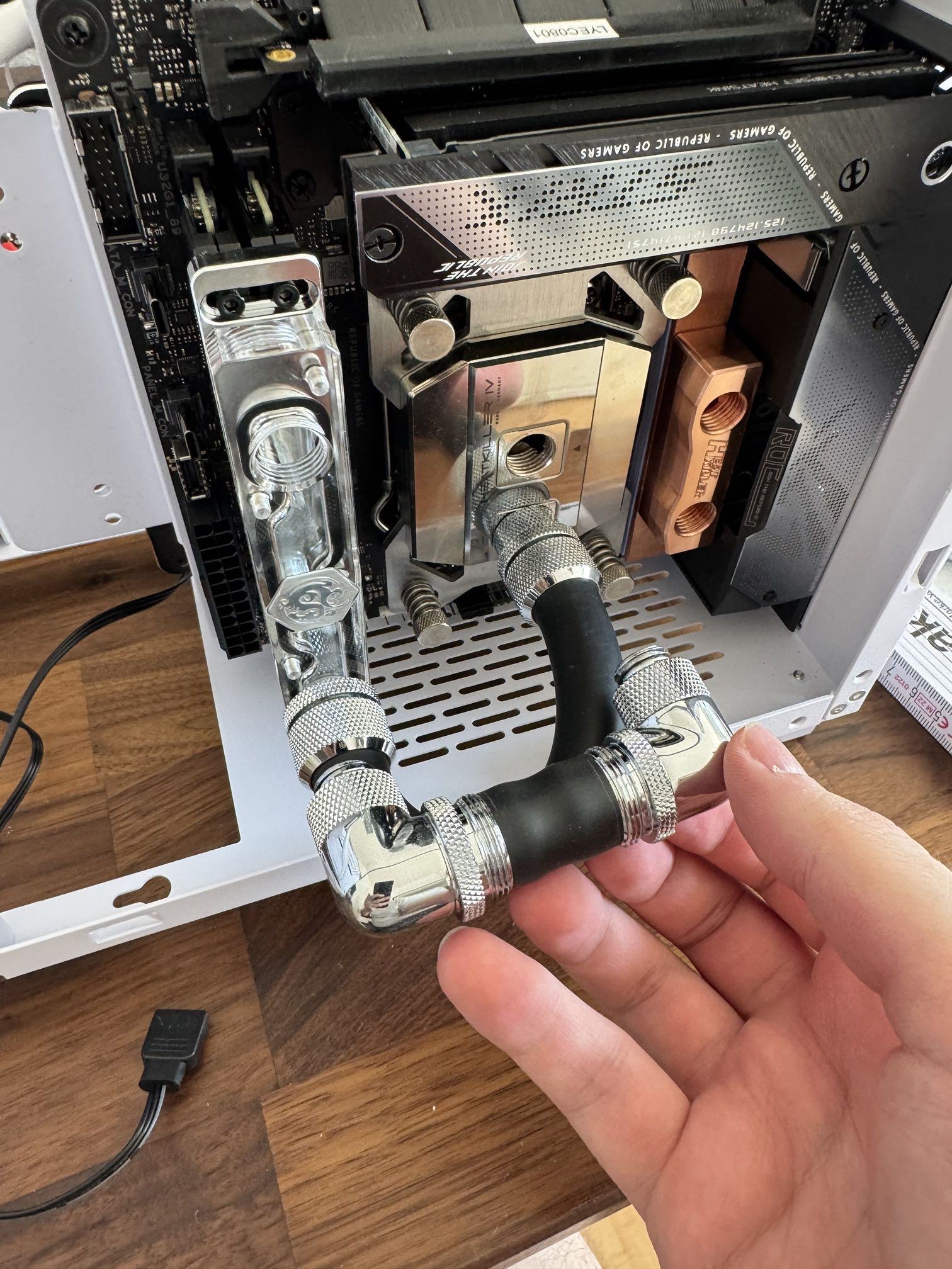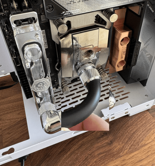Könnte wenn nur doppelt Schlauch nehmen weil ich ja den Höhenunterschied bei der CPU überwinden muss aber hab kein Doppelinnengewinde Winkel