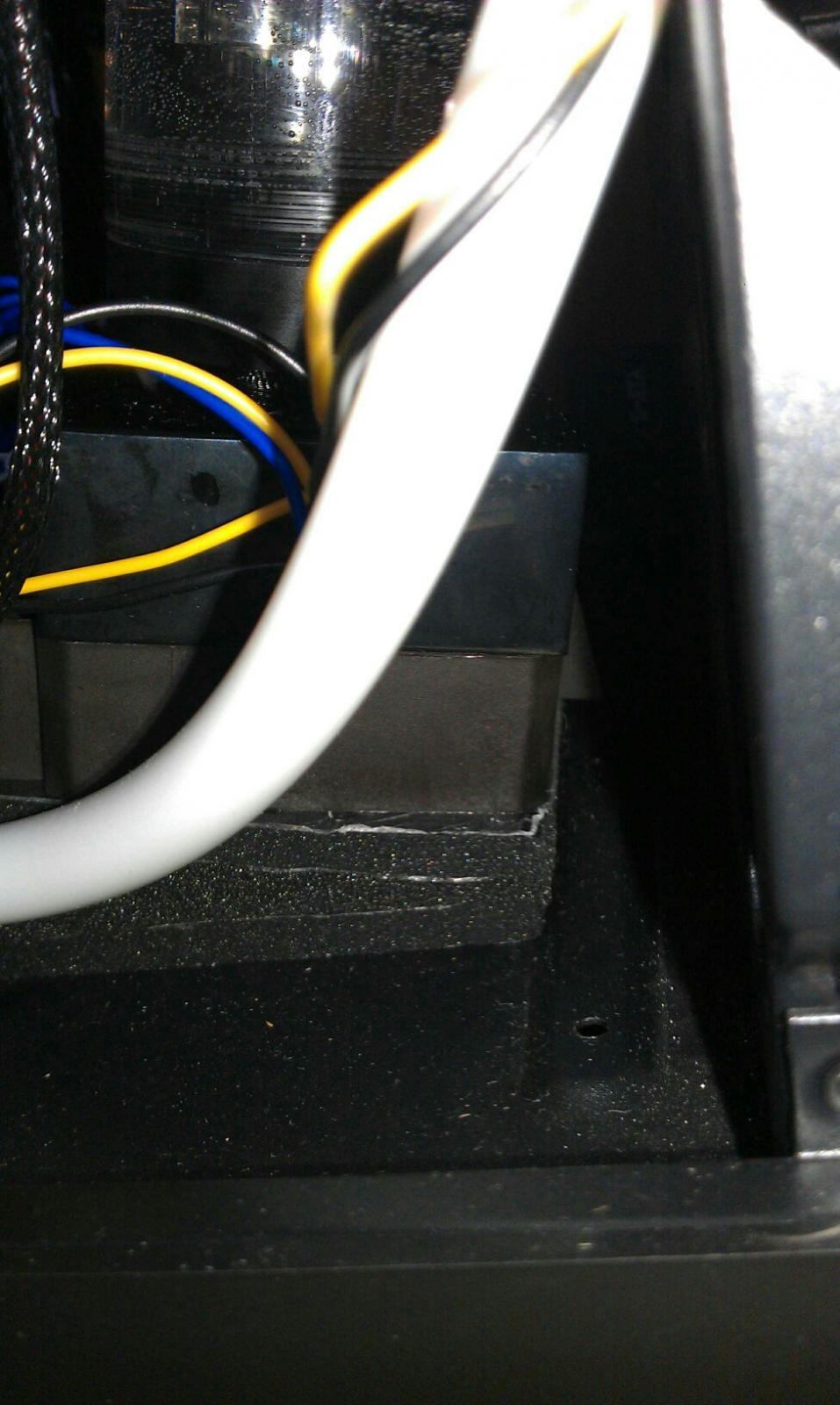 Entschuldigt die miese qualität aber ich hatte keine digicam zur hand. Hoffe da weiss jemand warum das wasser immer an den stellen abhaut. Der Schlauch nach rechts geht direkt zum AGB der im Laufwerksschacht ist.