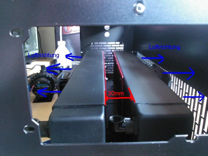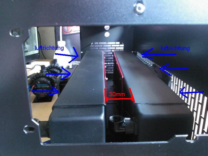 Und wie beförderst du die Abluft der beiden Radiatoren dann aus diesen Spalten bzw. aus dem Gehäuse?