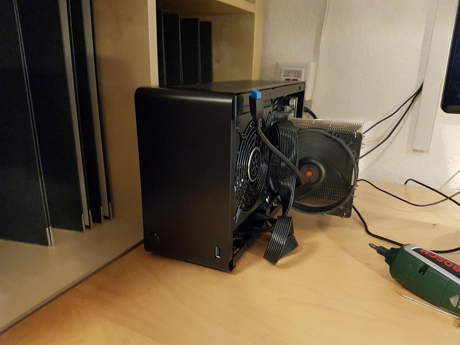 bezüglich NVME 960 evo.. habe einen offenen Aufbau der sich mit der Mainboard Rückseite auf einem Holzbrett befindet. Die 960 evo befindet sich auf der Rückseite des Mainboards.