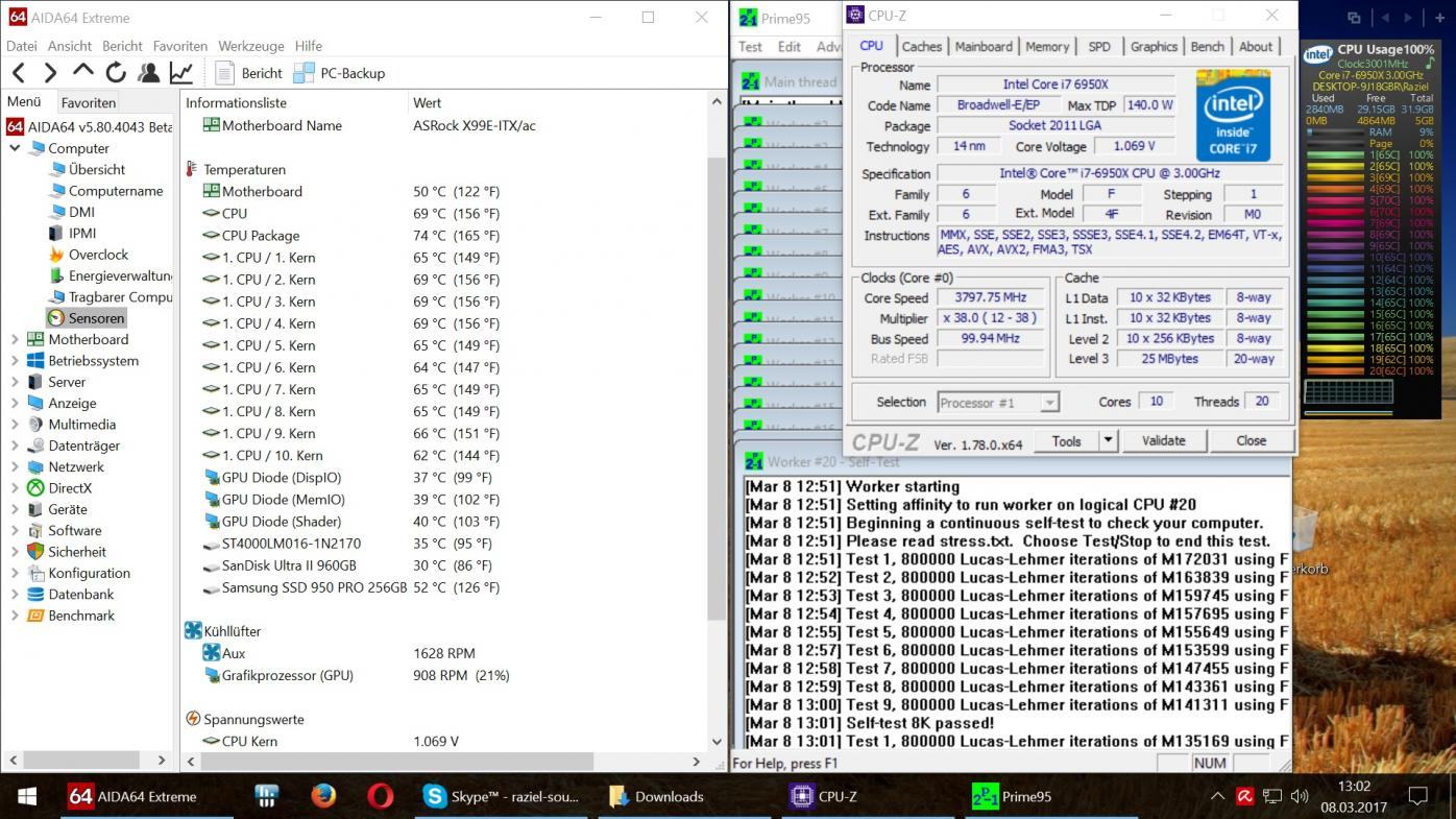 Die Temperaturen wurden vorerst ohne Seitenteile/Deckel gemacht. Es fehlen noch einige Bestellungen. Unter anderem Cablemod, Ramkühler, ...usw
