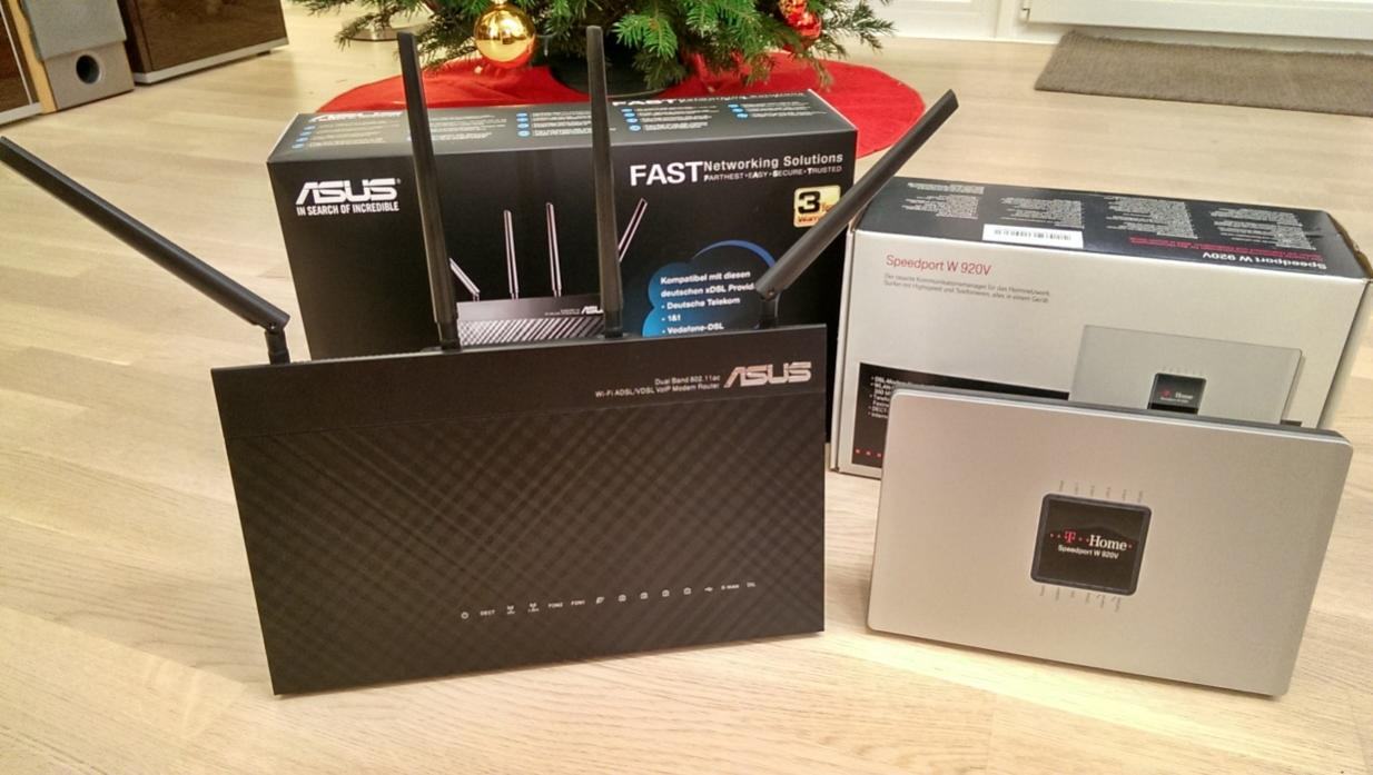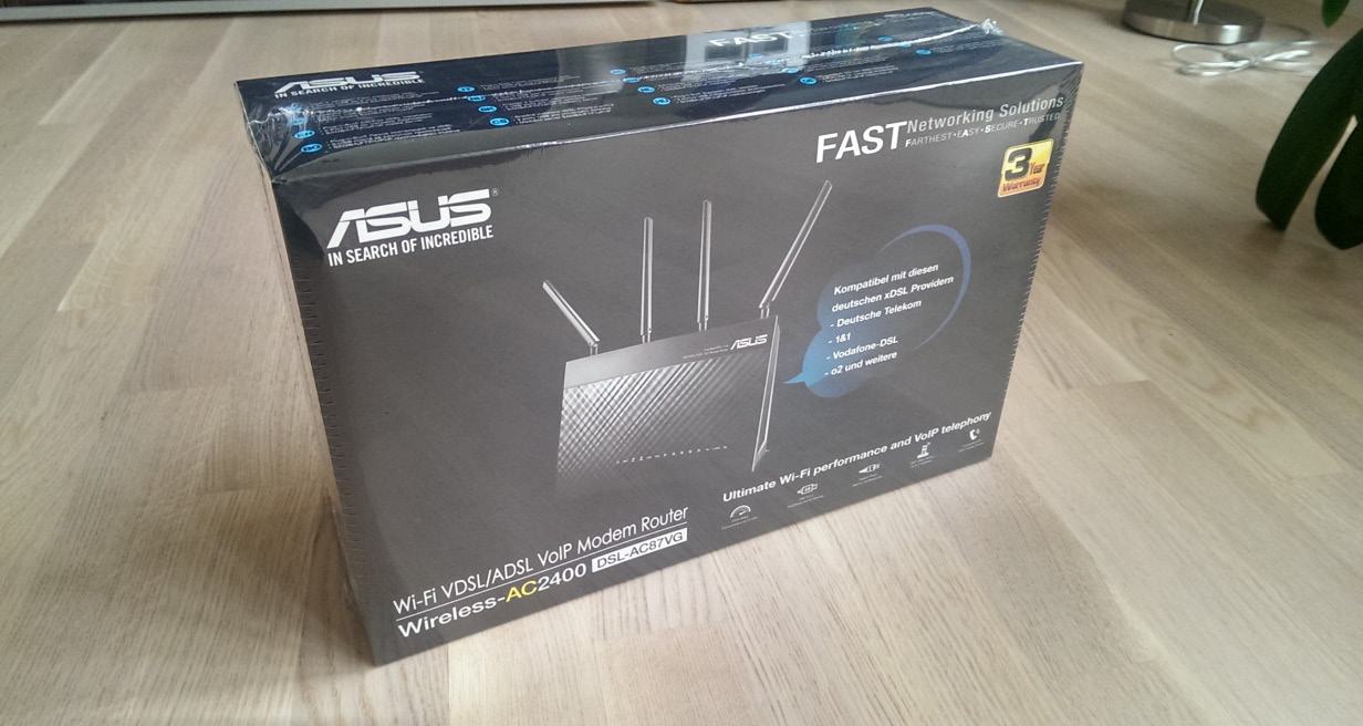 Nach ein wenig Marktforschung, bei der ich unter anderem auch auf das neue weiß-rote Flaggschiff gestoßen bin, entdeckte ich auch, dass es von ASUS etwas Feines gibt. Da das weiß-rote Modell offensichtlich mit Firmwareproblemen und sonstigen Fehlern zu kämpfen hat, sollte es der ASUS DSL-AC87VG sein.