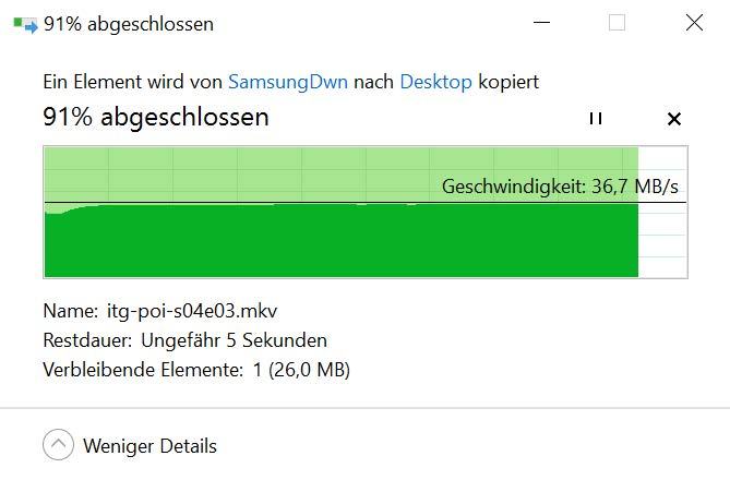 Wie bereits im Kapitel 6.4 getestet, sind durchschnittliche Raten von 36MB/s beim Lesen und 28MB/s beim Schreiben für eine USB 3.0 Schnittstelle zu langsam. Sofern per Software nachgebessert werden kann, sollte dies von ASUS in Angriff genommen werden.