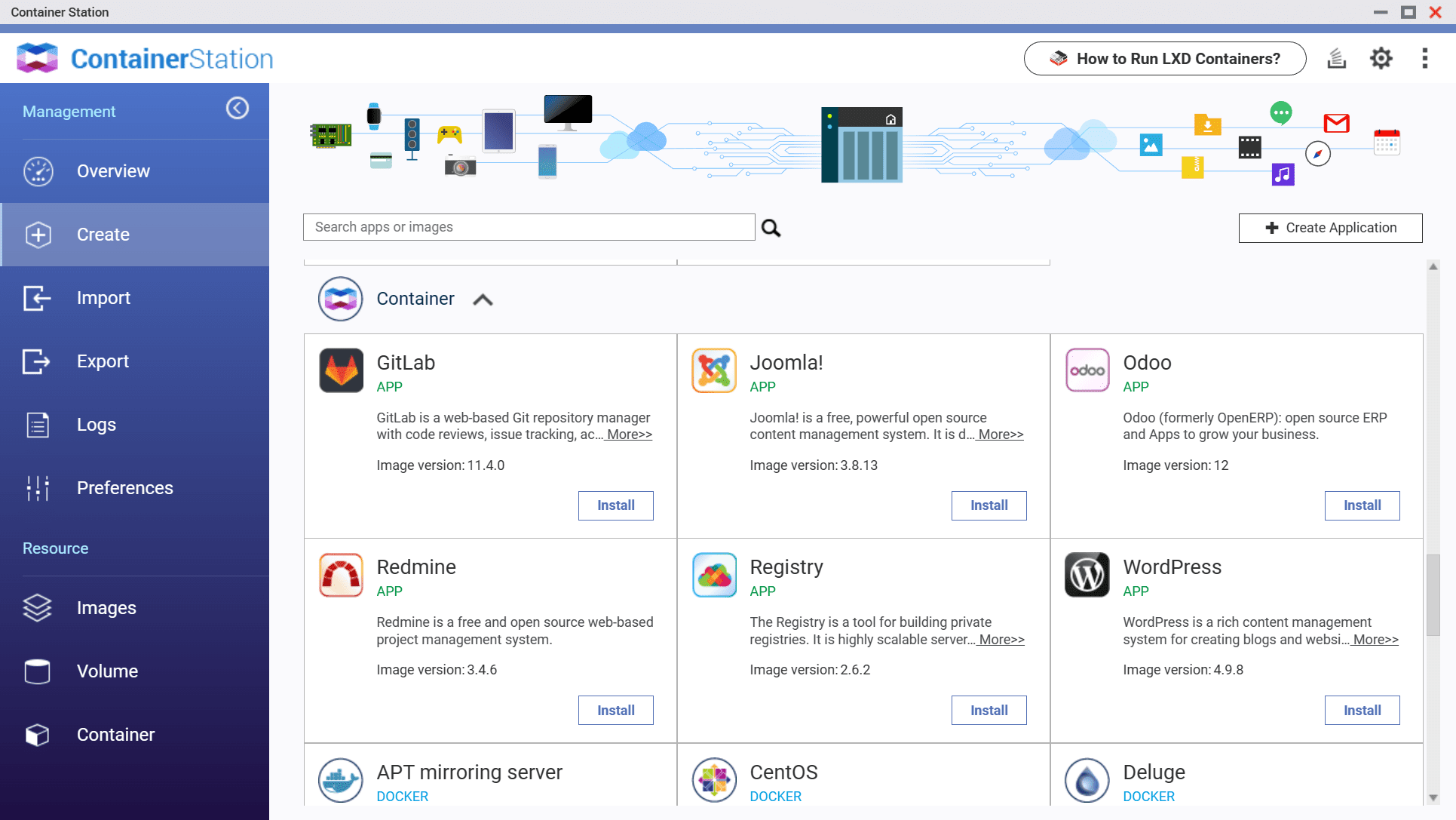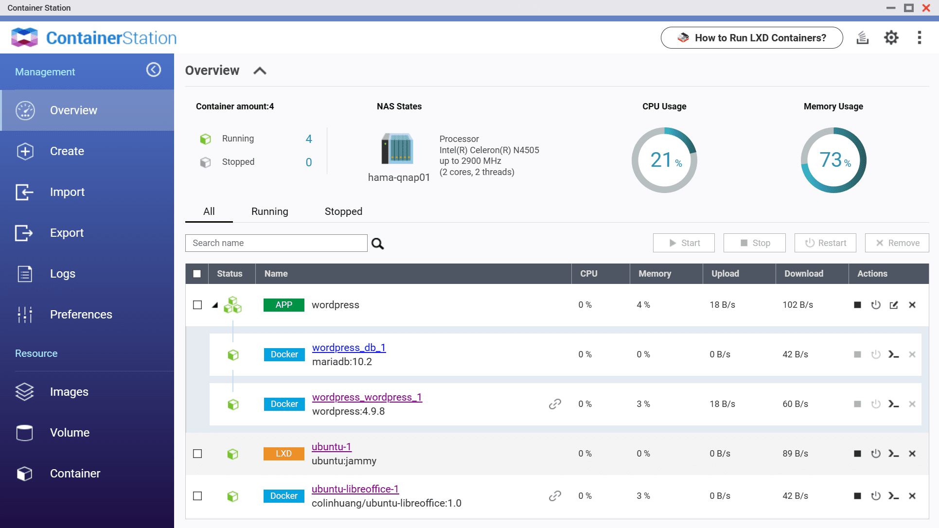 In der Container Station bietet QNAP die Möglichkeit, LXD-Container oder Docker Container zu betreiben.