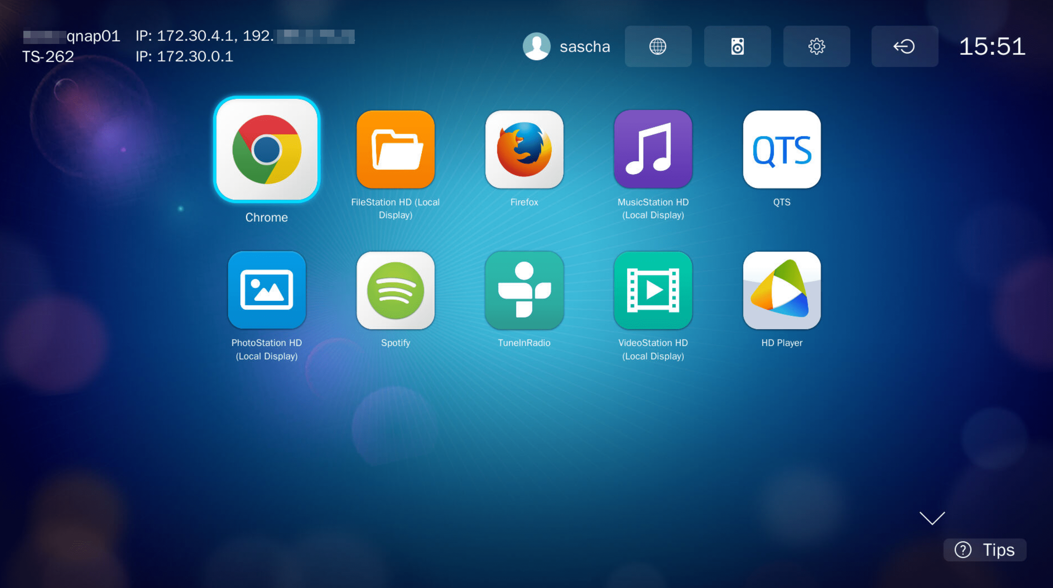 Die HybridDesk Station ist eine Sammlung mehrerer Apps, die man über den HDMI-Port des QNAP direkt auf einem Fernseher darstellen kann. Hierzu gibt es im App Center eine eigene Kategorie, in der nur die dafür passenden Apps gelistet werden.Nach Aktivierung sieht die Startoberfläche wie folgt aus und erinnert ein bisschen an die frühen Smart TVs: