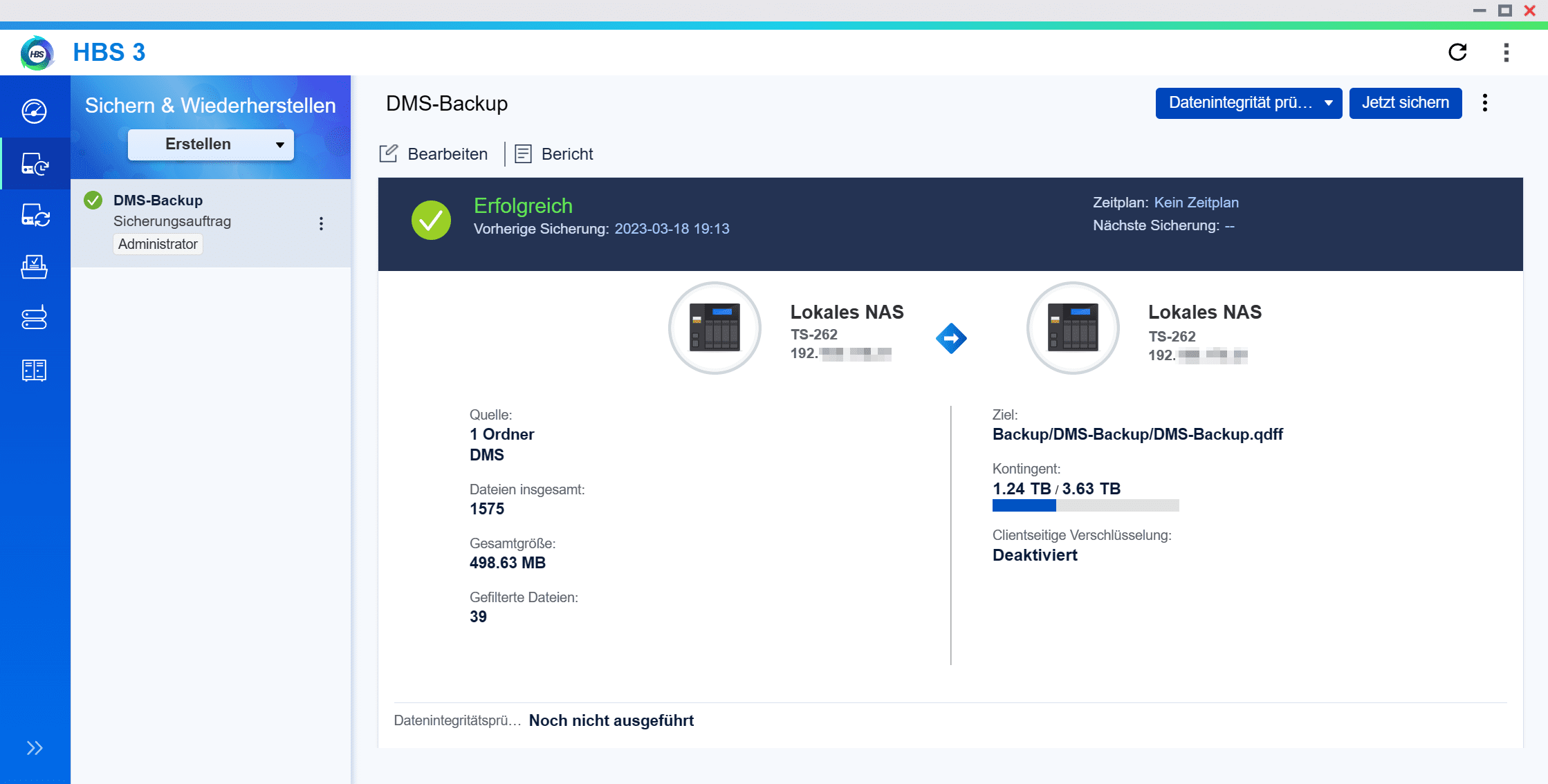 Also habe ich einen kleinen Ordner genommen und diesen auf das lokale NAS gesichert. Hier konnte ich dann die möglichen Funktionen testen. Dazu zählen: