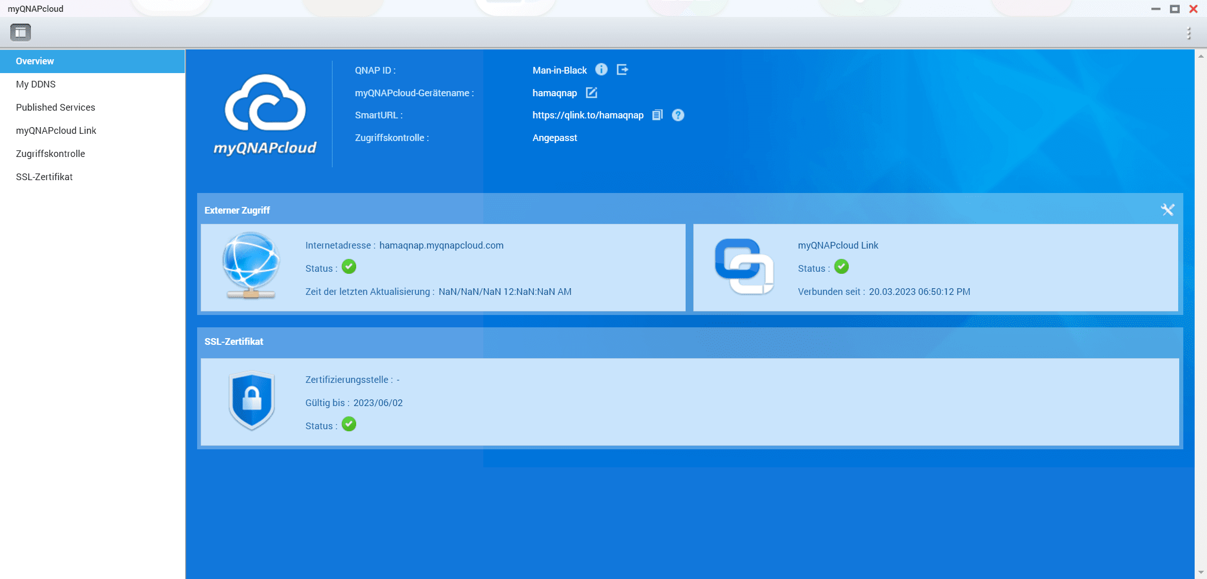 Hat man die myQNAPcloud eingerichtet kann man noch ein Zertifikat mittels Let’s Encrypt installieren und den myQNAPcloud Link einrichten, mit dem man von extern auf das NAS ohne Portfreigabe zugreifen kann.