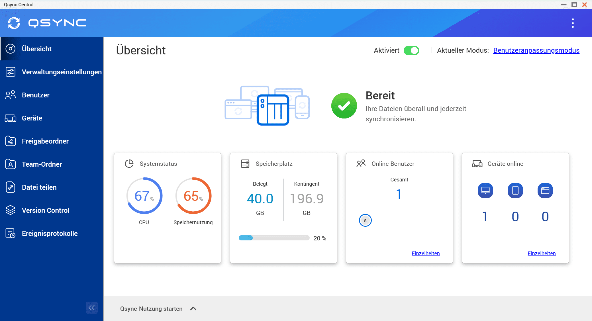 Mit QSync Central können Dateien dem NAS und z.B. einem PC problemlos synchronisiert werden, und dass in den eigenen 4 Wänden, ohne auf einen Cloud-Anbieter zu vertrauen. Das ist z.B. dann recht praktisch, wenn man Daten gerne zentral angelegt haben möchte, um diese auf allen PCs synchron zu halten und gleichzeitig aber lokal mit den Daten arbeiten möchte, ohne diese über das Netzwerk von z.B. einem Netzkaufwerk zu laden.