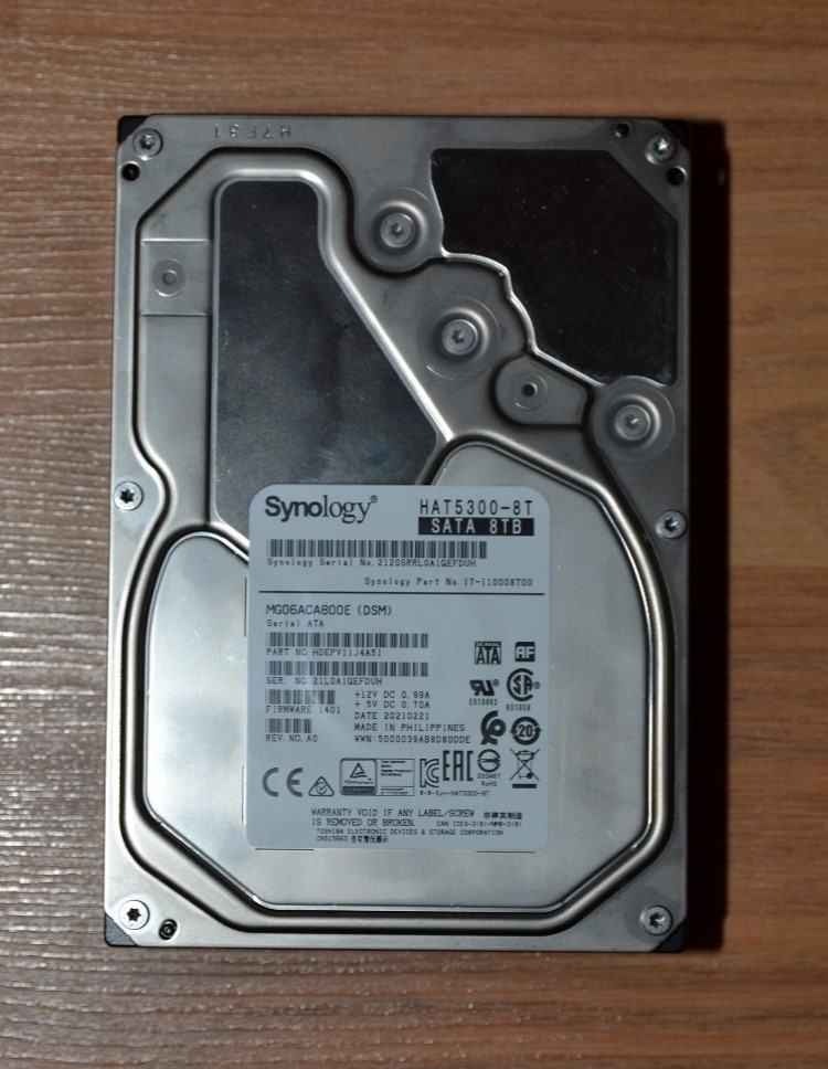 Die beiden mitgelieferten Festplatten sind die neuen Synology eigenen Festplatten vom Typ HAT5300-8T. Die Festplatten wurden speziell für NAS Systeme entwickelt und zeichnen sich durch eine „[…] unerreichte Zuverlässigkeit für Einsätze in Synology-Systemen“ (Quelle) aus. Mehr als 300.000 Stunden an internen Validierungstests bekräftigen die Aussage.