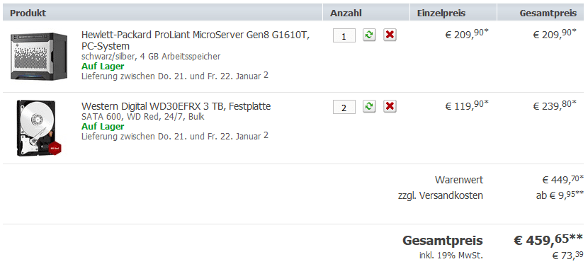 Ich hatte breits mal ein 2 Bay System von Synoligy hier, allerdings hat mich diese nicht überzeugt und deshalb ging es zurück zum Händler. Vor einiger Zeit habe ich bereits hier im Forum gestöbert und bin auf die MicroServer von HP aufmerksam geworden. Ich denke, dass diese für meinen Zweck dienlich sind.