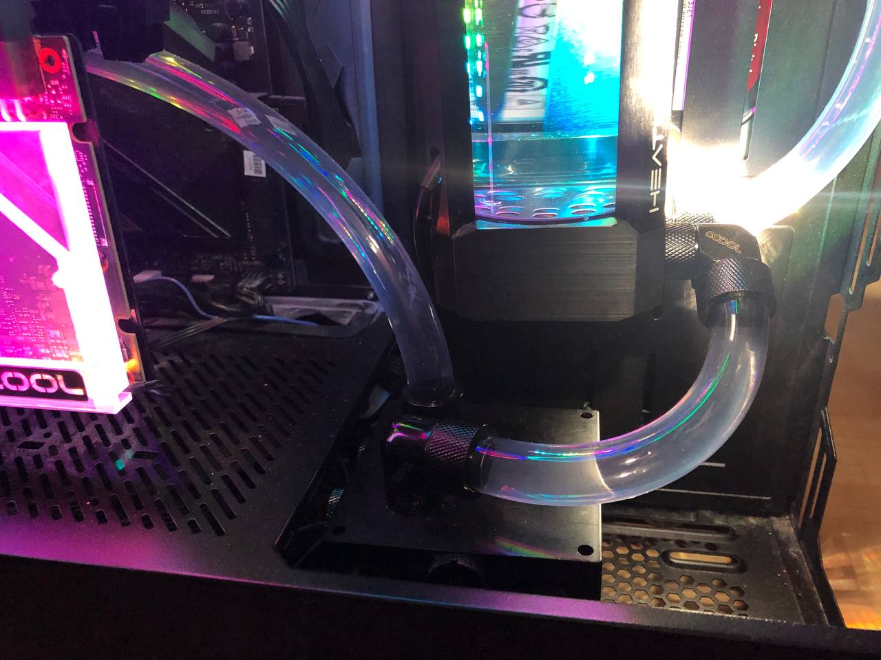 Der Kreislauf ist so aufgebaut: Pumpe -> Grafikkarte -> CPU -> Radiator -> Ausgleichsbehälter.