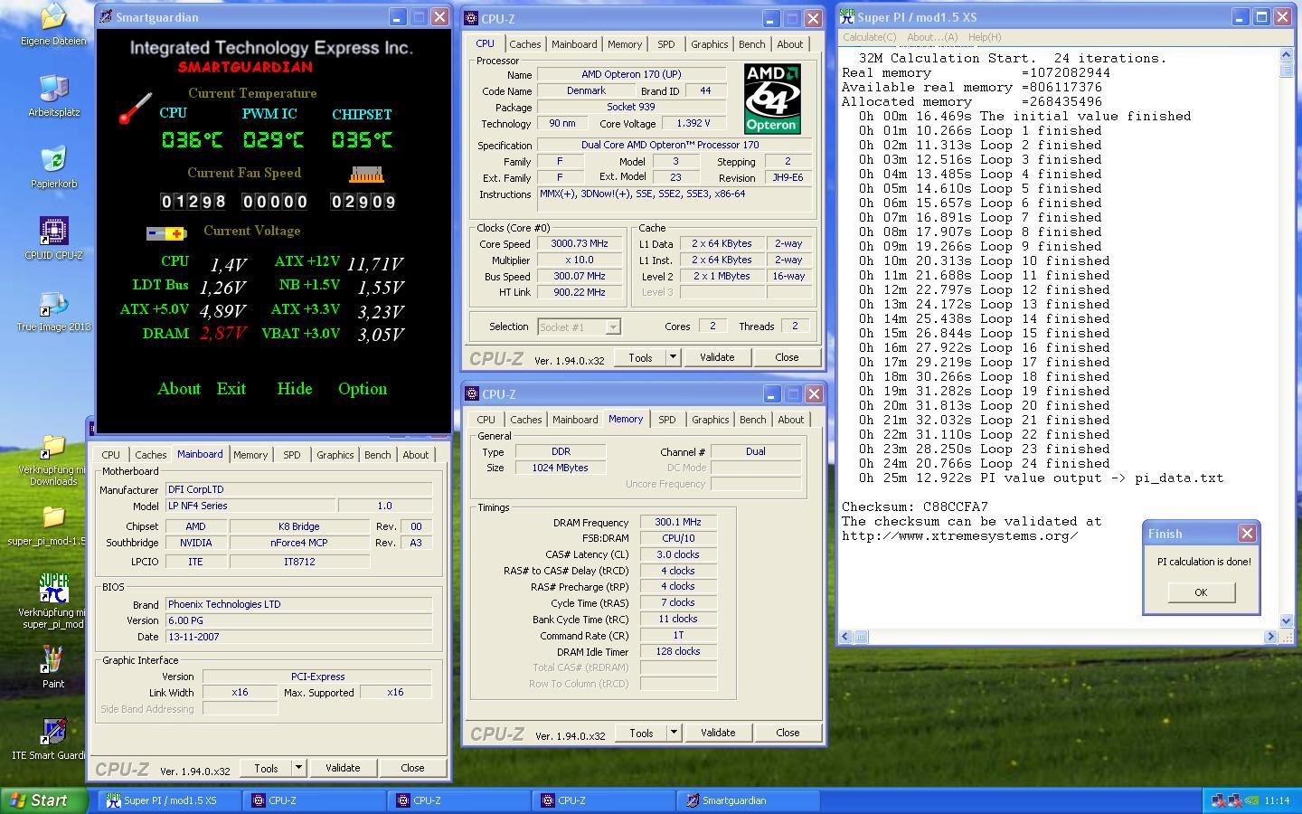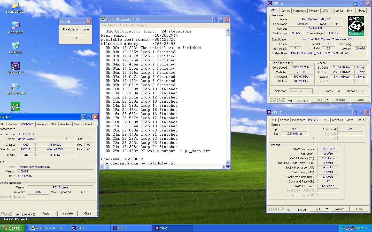 290 MHz | 3,0-3-3-8 1T | 3,00v | 1x1024 MB | MDT M924-400-16 P18098 (Nr. 29) | MDT25D51280S-5 | nF4 | stunned_guy | Link