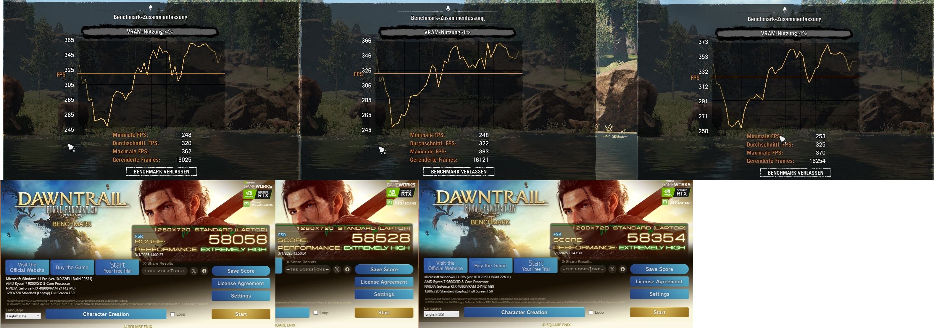 P.S. Zur Überprüfbarkeit der Ergebnisse und für alle, die sich von meinen Einstellungen inspirieren lassen möchten, hänge ich Screenshots von sämtlichen Tests mit an.