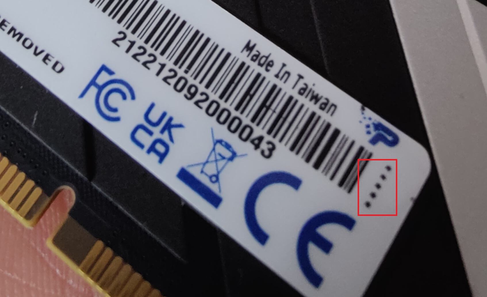 | Production Code: ETM[M][08]A2104 H - Hynix K - Chips wurden relabeled / ICs have been relabeled by Kingston M - Micron (Spectek) N - Nanya S - Samsung 04/08/16 = Anzahl der auf einem Modul verbauten DRAM Chips. Daraus ergibt sich auch die Organisation: 04 = 1Rx16 08 = 1Rx8 16 = 2Rx8 DRAM Kennung auf dem Label der Verpacking: 08 - Micron 12 - Nanya 16 - Samsung 32 - Hynix ![]() | Nach aktuellem Stand hat sich Patriot offenbar dazu entschieden den, von den DDR3 und DDR4 Modellen bekannten, seitlichen Produktionscode auf dem Label zu entfernen. Die bisher abgelichteten Kits hatten statt dessen an dieser Stelle alle nur noch fünf Sternchen (*****). Damit ist also an Hand des Labels keine Identifikation der ICs mehr möglich. Update: Bei neueren Modellen sind auch diese 5 Sternchen nicht mehr vorhanden. |