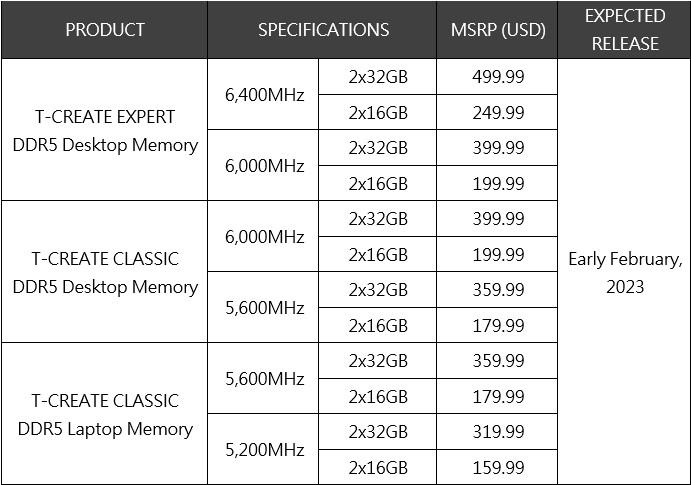 Vereinfachte Übertaktungstabelle DDR5 (erste Version):
