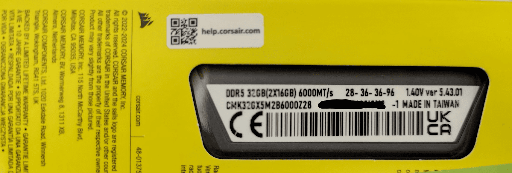 | Ver3.43.01 = Micron 16Gbit A-Die (Q1 | Q2 | Q3) Ver3.43.02 = Micron 16Gbit B-Die (Q1) Ver3.43.04 = Micron 16Gbit D-Die (Q1) Ver3.53.02 = Micron 24Gbit B-Die (Q1) Ver4.43.13 / .02 = Samsung 16Gbit B-Die (Q1 | Q2 | Q3) Ver4.43.19 = Samsung 16Gbit P-Die (Belege gesucht) Ver5.33.01 = Hynix 16Gbit A-Die 8Gbit Downbin (laut OC-Test @) Ver5.43.01 = Hynix 16Gbit A-Die (Q1) Ver5.43.13 = Hynix 16Gbit M-Die (Q1 | Q2 | Q3) Ver5.53.13 = Hynix 24Gbit M-Die (Q1) What integrated circuits ICs are used on my Corsair memory? | Lot Code -88... = 8Gbit Downbin eines 16Gbit ICs, -8821A entspricht also einem 5H16A Downbin -S410B = Samsung 32Gbit B-Die Downbin (Q1) -S810B = Samsung 16Gbit B-Die (Q1) -S82*A = Hynix 16Gbit A-Die (Q1) -S82*M = Hynix 16Gbit M-Die (Q1) -S83*A = Micron 16Gbit A-Die (Q1) -R810B = Samsung 24Gbit B-Die (Q1) -R82*M = Hynix 24Gbit M-Die (Q1) -R83*A = Micron 24Gbit A-Die -T810M = Samsung 32Gbit M-Die (Q1) |