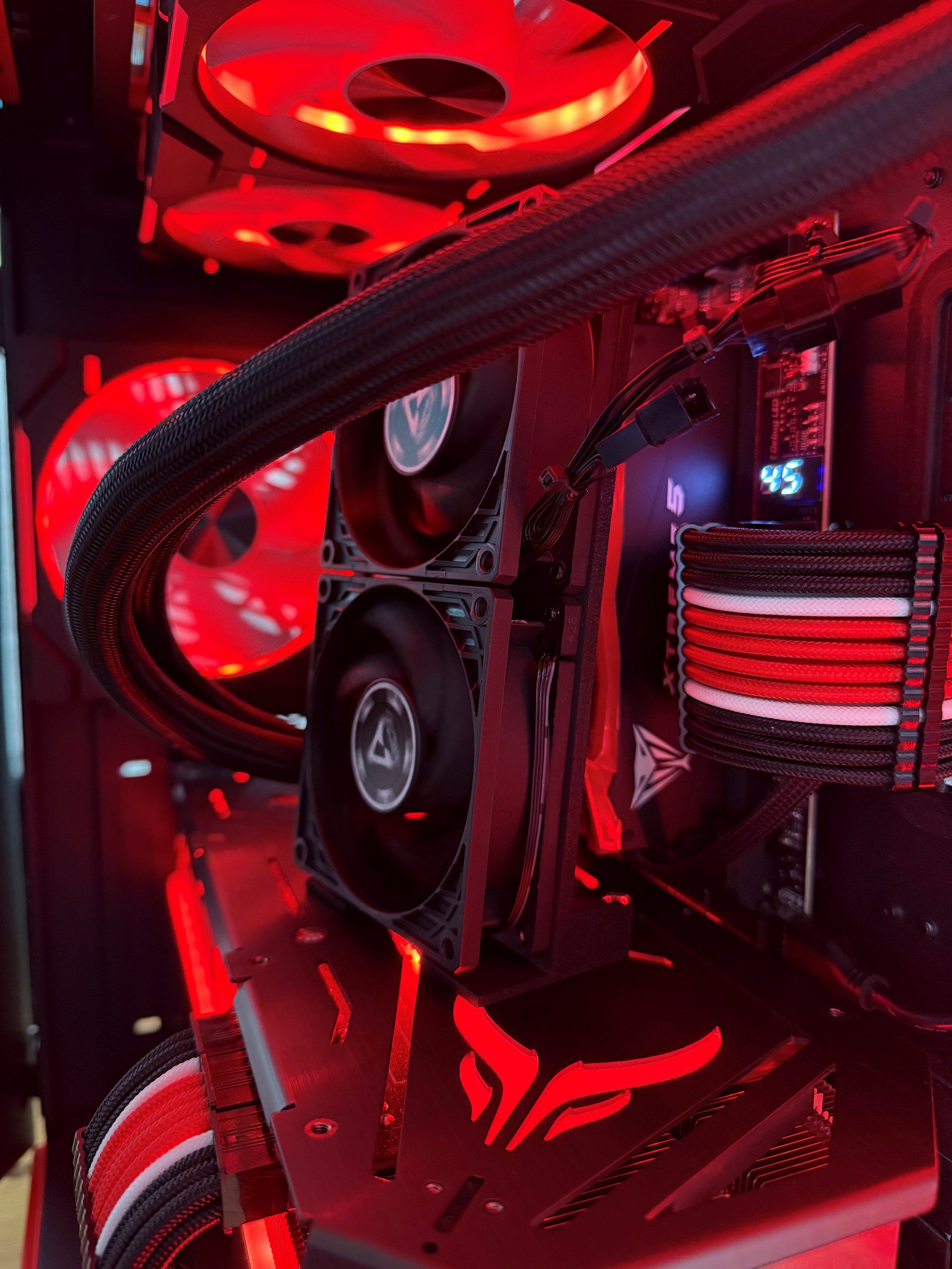Allerdings brauchte ich noch etwas ordentliches fürs Testen im Gehäuse… 2 80mm Arctic Lüfter sind 2-3 Grad besser als ein 120er 1500upm Lüfter und dabei ungefähr gleich laut.