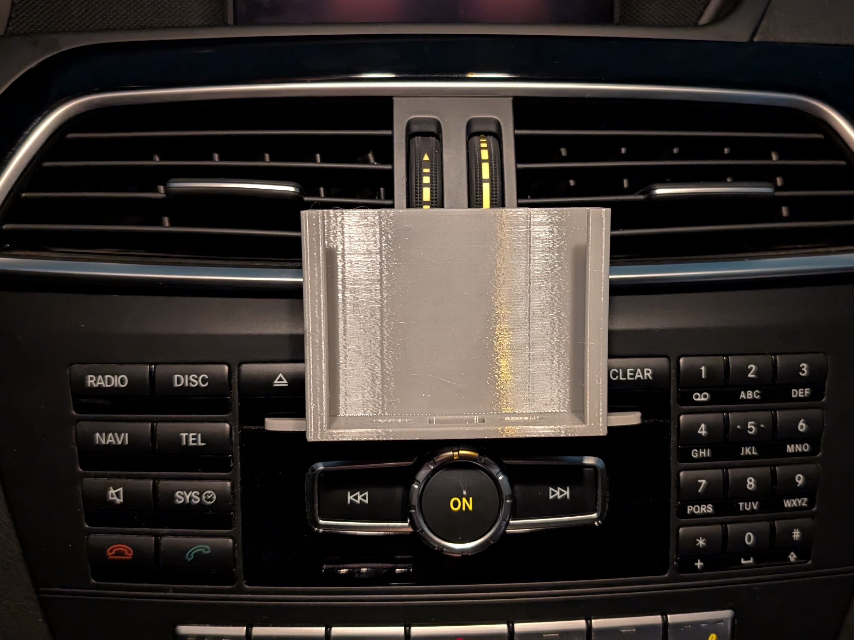 Ja, das wird nur eingesteckt. Bei der C-Klasse (W204) sind im CD Schlitz zwei Lichtleiter (die bei eingeschalteter Instrumentenbleuchtung + Radio aufleuchten) rechts und links, ca. 5mm vom Rand entfernt.