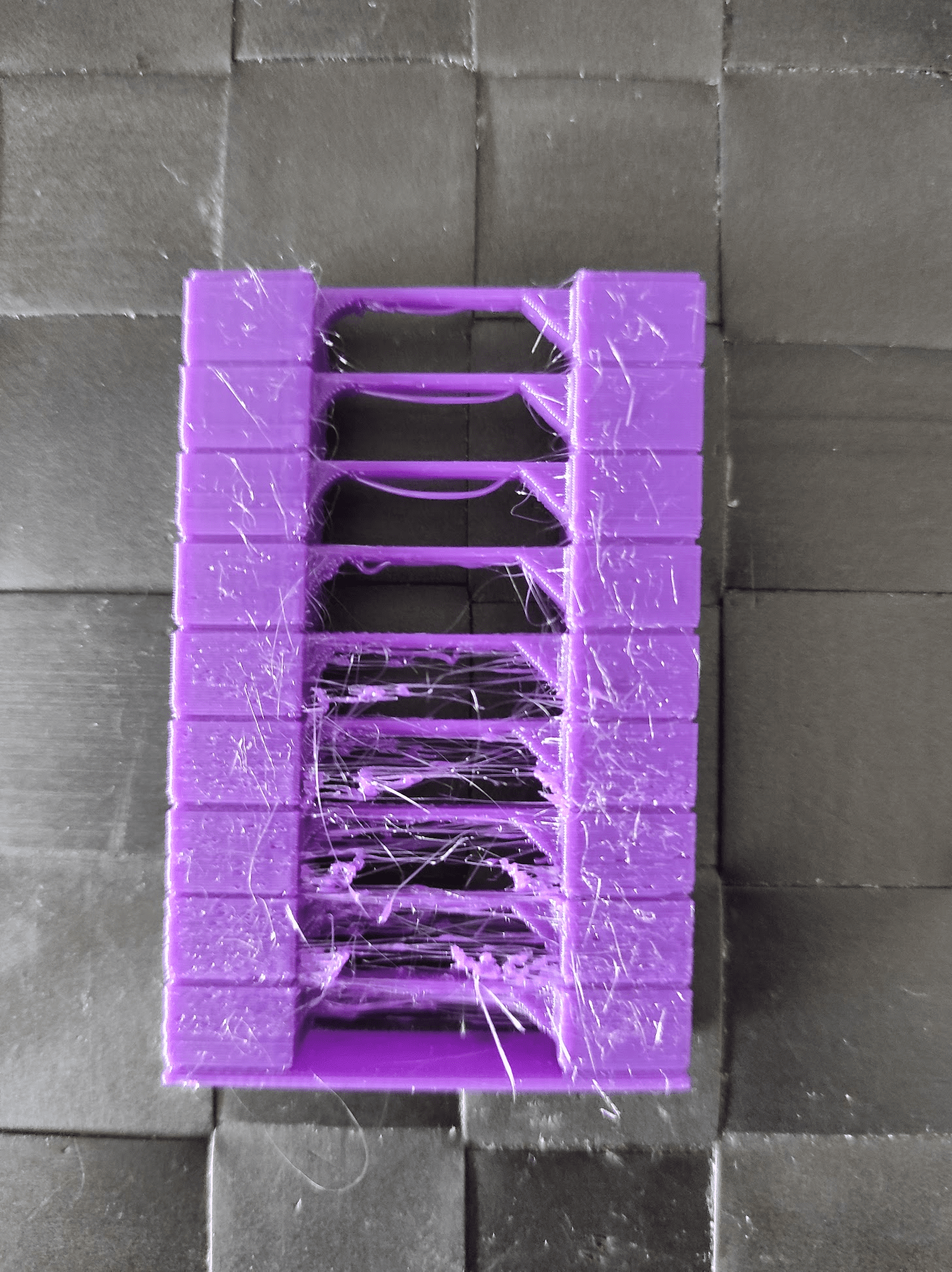 In der Mitte sieht man die Oberseite. Die ist, wie man das von Keycaps kennt halt konkav. Das lässt sich ohne Stützstruktur leider nicht drucken, weil die Kappe nur minimal an den Ecken aufliegt.... ich kriegs zumindest nicht hin. Ist aber sogesehen kein Problem, weil.... die Buchstabenaussparung muss sowieso gefüllt werden, und das kriege ich ohnehin nicht glatt hin.
