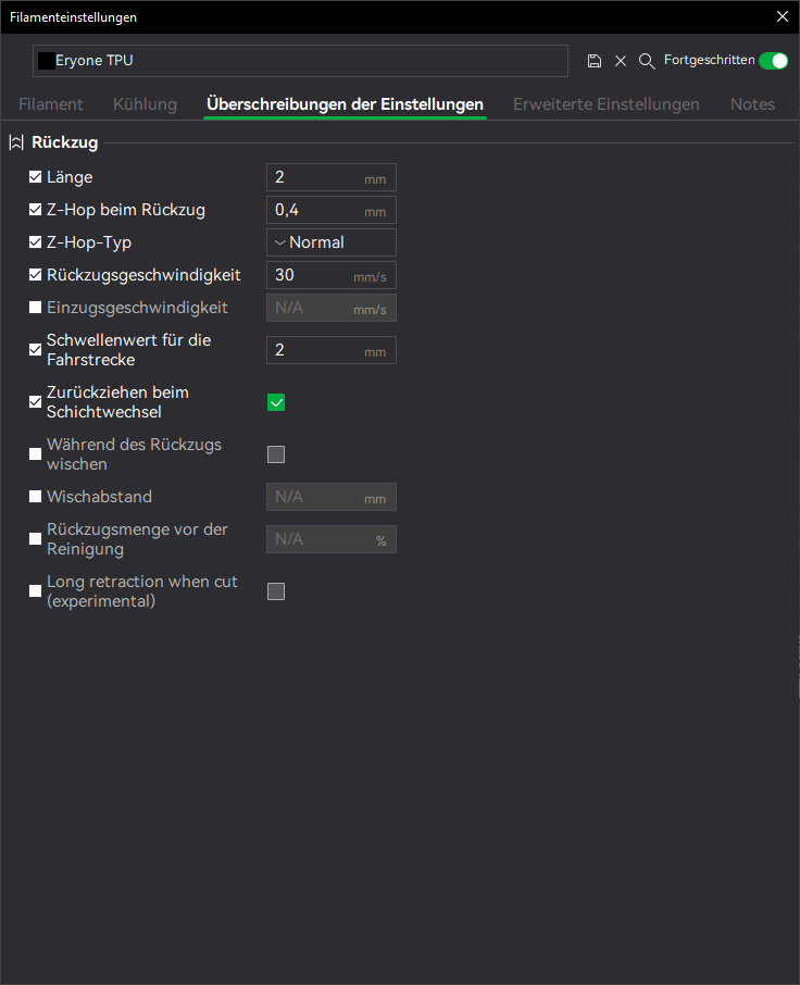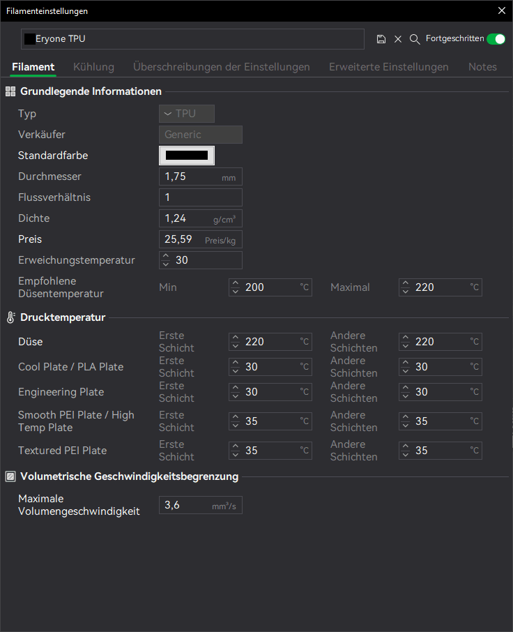 Ich drucke das aber im Bambu Lab X1C und Eryone ist mein TPU was ich nur verwende weil Preis/Leistung einfach passt