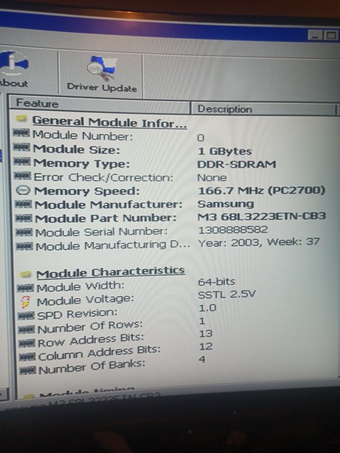 | Byte 31 | Module Bank Density This refers to the Mega-Byte in each physical bank (rank) on the DIMM. For example: if a 256MB module has two physical banks, then each physical bank should have 128MB. | 32 MB 08h 64MB 10h 128MB 20h 256MB 40h 512MB 80h |