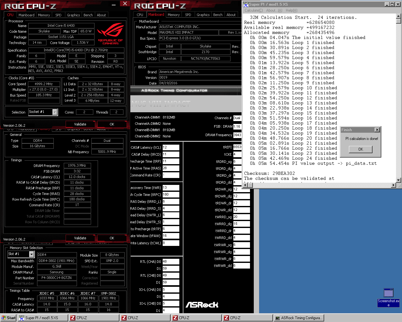 5:54:000 | 49x102.1 | 6600K | 2042.0 MHz | 12-11-11-28 1T | 1.97V | 2x8GB G.Skill F4-4133C19D-16GTZKW (S8B) | Asus M8I | AiO / Luft | Digg