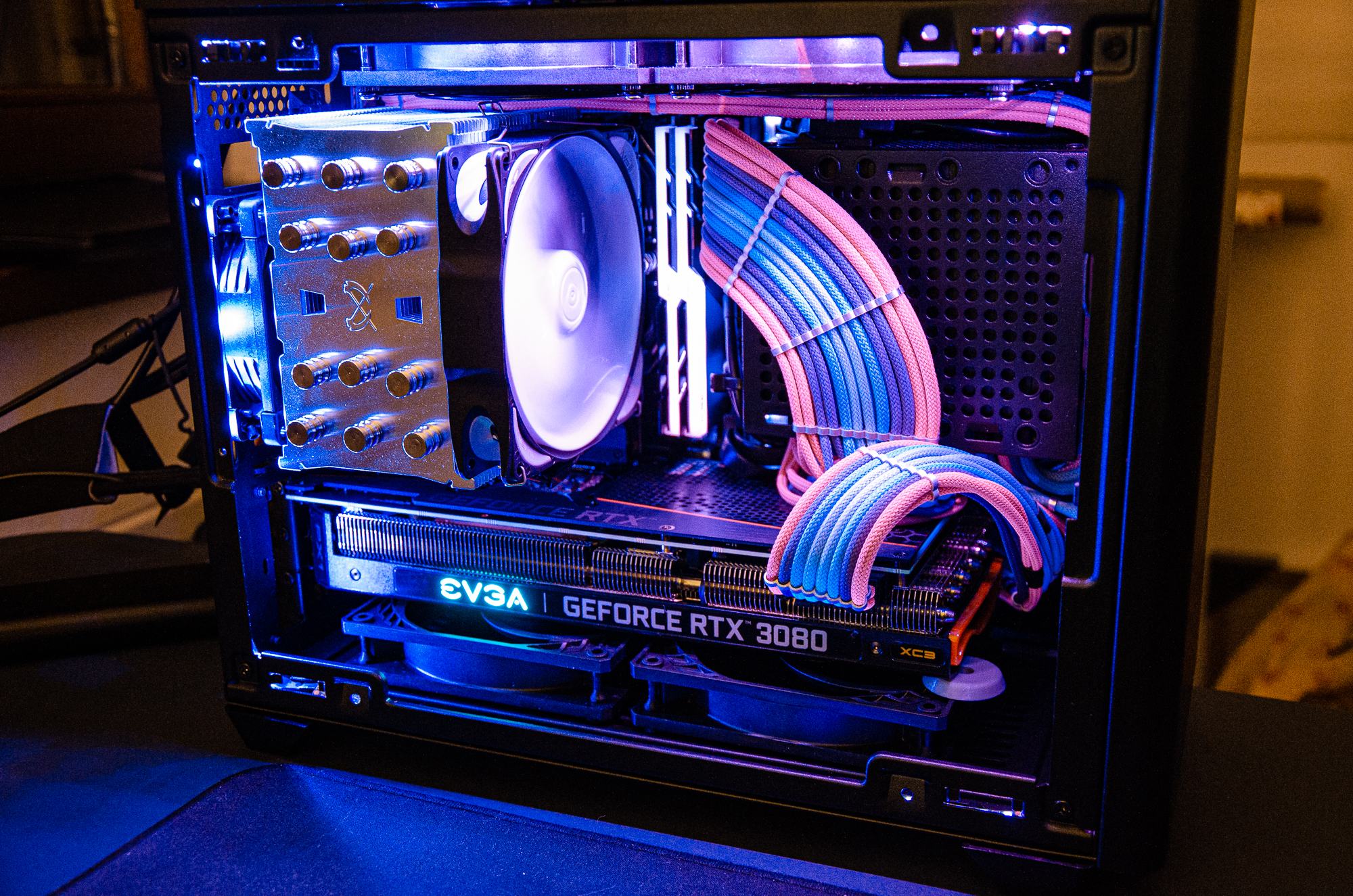 eine CoolerMaster 240mm AiO. Ebenso ist der HTPC im Wohnzimmer flach stehend, der im Schlafzimmer aufrecht stehend. Auch hier