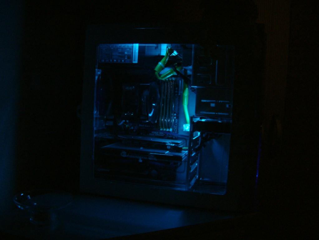 Unter dem Kühler sitzt ein 8400er. Bis auf das Brummen der zweiten Festplatte ist der Rechner oberhalb des Tisches unhörbar. Für das Brummen habe ich aber schon eine Lösung, die diese Woche kommt. Und ich hoffe, dass das so funktioniert, wie ich mir das vorstelle.