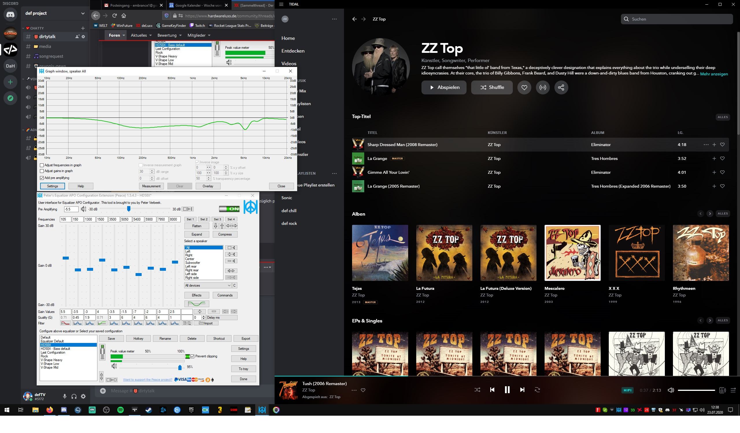 - Höhen musste ich wie bei mir obligatorisch stutzen zwischen 5 und 9khz. Aber waren auch auf stock nicht extrem schrill, ab 10khz auch genug Luft vorhanden. Wirklich erstaunlich gut.