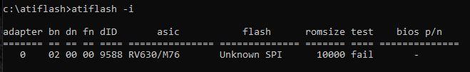 Hi. Ich versuche eine ATI Radeon HD2600XT mit Apple Mac Bios (die hier) mit einem PC Bios zu flashen. Bei ATIflash kommt das unten angegebene heraus wenn ich die Adaptersuche starte. Flashen kann ich deswegen nicht, ich bekomme nach dem flash befehl nach langer Wartezeit ein "Failed to read ROM" und nach einiger Zeit noch "Error: 0FL01". Er erkennt scheinbar den Bios Chip nicht. ich habe auch das forcierte flashen versucht (atiflash -f -p 0 2600xt.rom). Hat jemand eine Idee was ich noch versuchen könnte? Wenn ich das vorhandene ROM der Karte testen will (mit atiflash -t 0) kommt: error 0fl02.