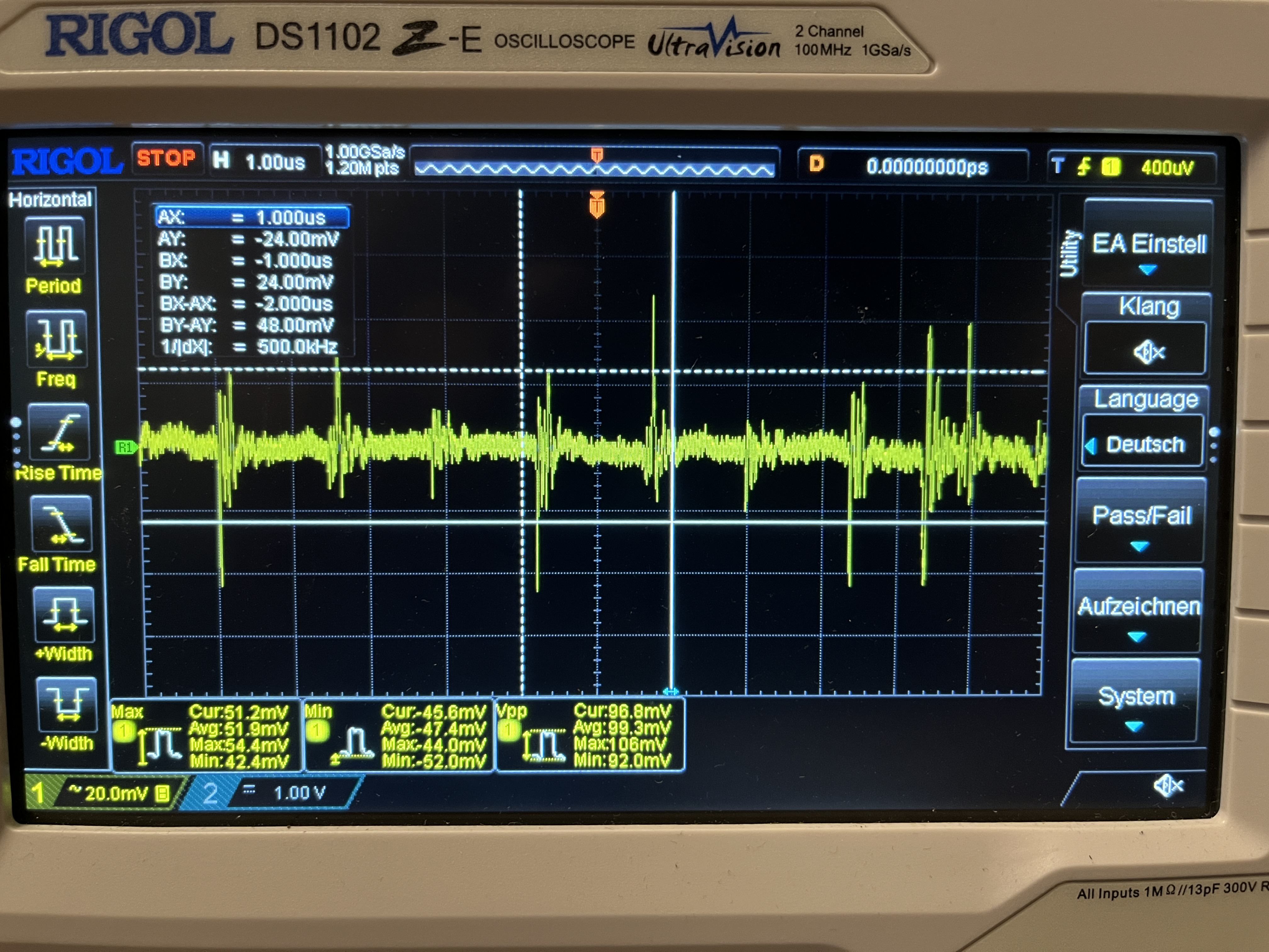 Ich glaube interessant wird es, wenn man z.B. Bits auf Datenbus (z.B. FSB) mitschneiden will. Bei 200Mhz Takt wird's mit 1GSa/s vermutlich schon eng und dementsprechend teuer?! Für so Dinge wie analoge Messungen, Restwelligkeiten und generell Checks dürfte es natürlich reichen... Bei Rigol kann man afaik via Mod die Features "aufbohren", geht das bei Siglent auch? Webinterface ist natürlich genial, wenn man Screenshots o.Ä. haben will...2-Kanal 100MHz mit 1GSa/s haben sie alle.