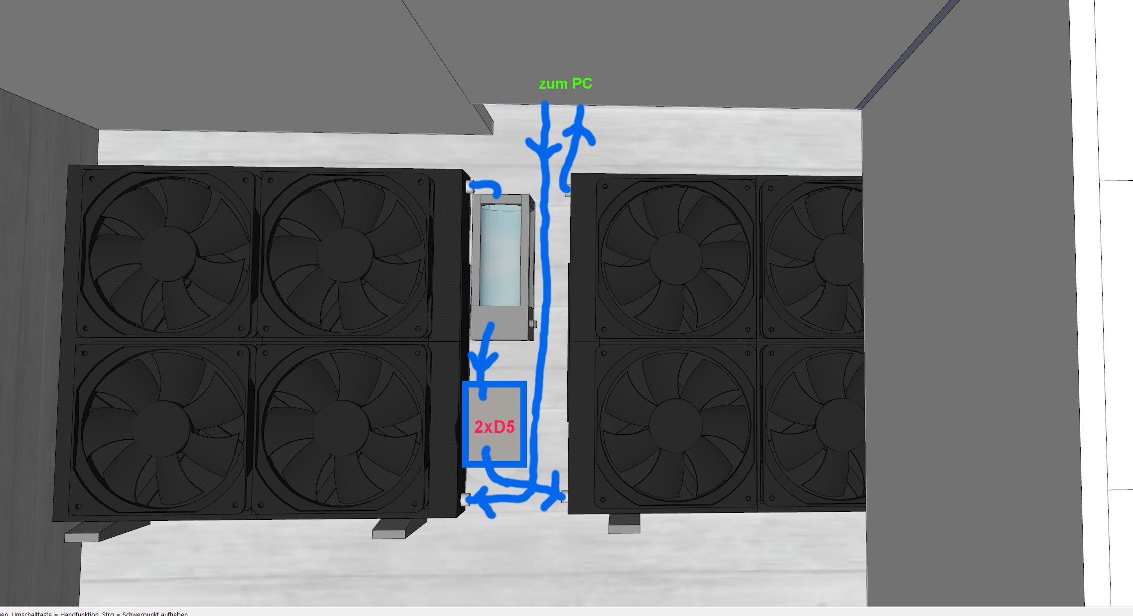 - 2x DFM Highflow Next, AC Octo, AC Quadro, 2x Hubby7, 5x Temperatursensor, 2x Shoggy, 15x 140er Noctua