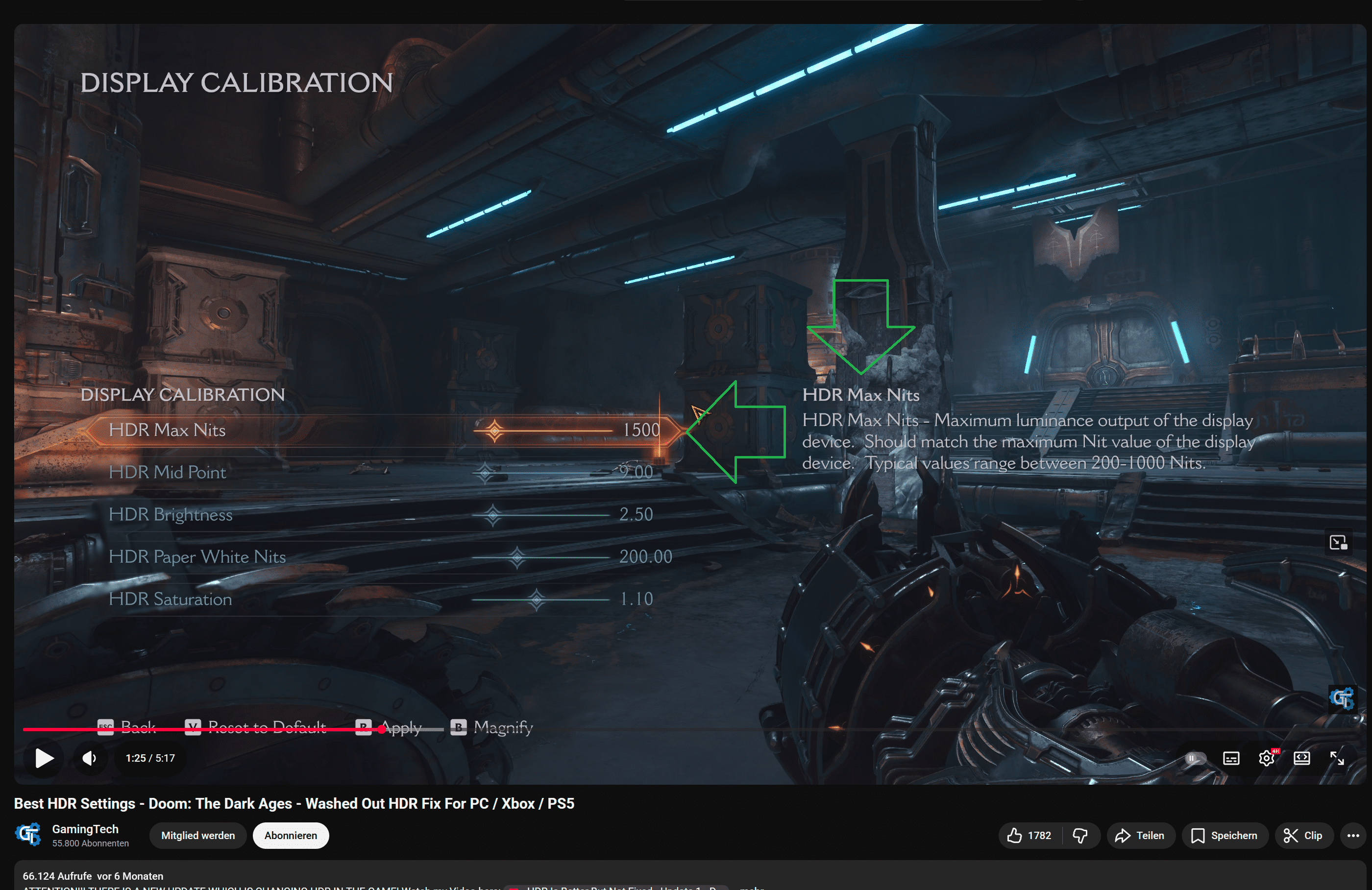 Also wichtig is halt das du durch Reviewes erfährst welcher Bild Mode deines Monitors / TVs welchen Peak Brightness Wert bei 2 % Window hat und das stellst du dann beim Nit Cap im Game Menu ein