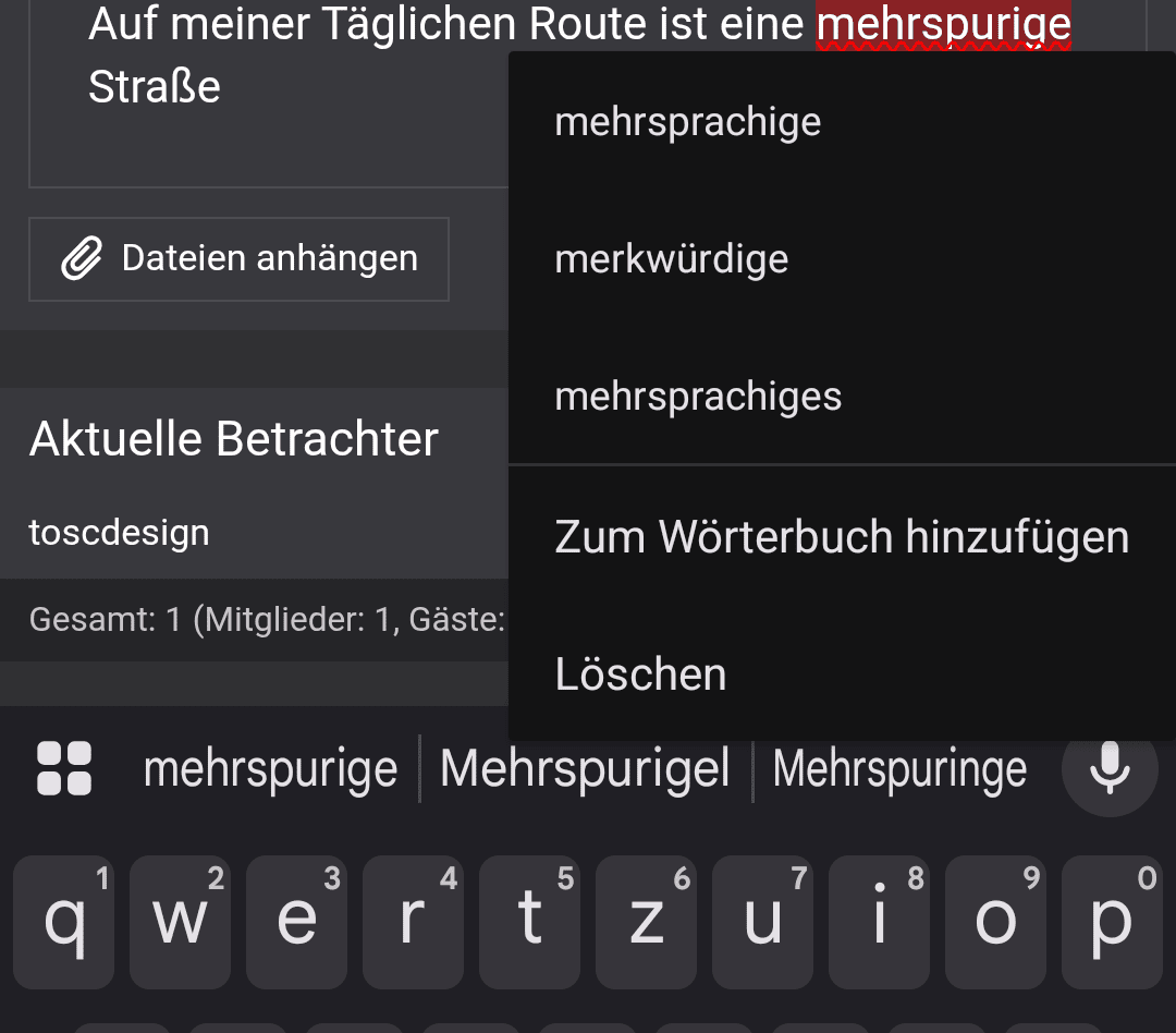 Ich weiß, dass der User wahrscheinlich Probleme mit der Rechtschreibung hat.