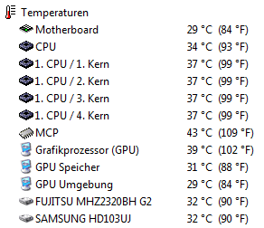 nach 5 Minuten mit Lüftern an (7 Volt, unhörbar):