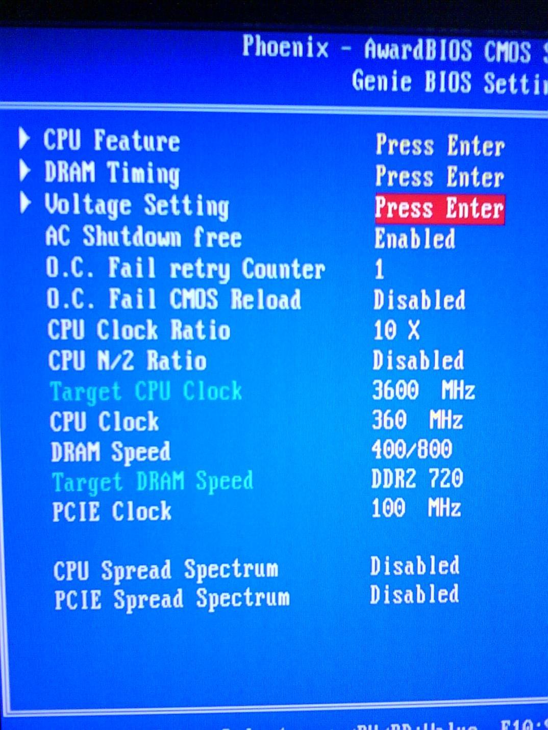Hatte erst den FSB Jumper auf 333Mhz gestellt (für meinen E6850), kam immer der berüchtigte "C1 error".