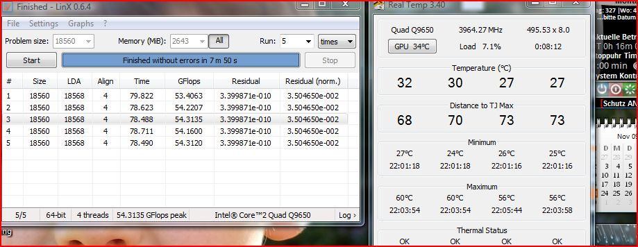 P.s. beim ersten mal wieder hochfahren nach der orgie hat er auch nur 2 CPUs mit 2,66Ghz (bei nen 9550er) angezeigt hatte schon nen Riesen schreck. Aber die default settings geladen und dann war alles beim alten...